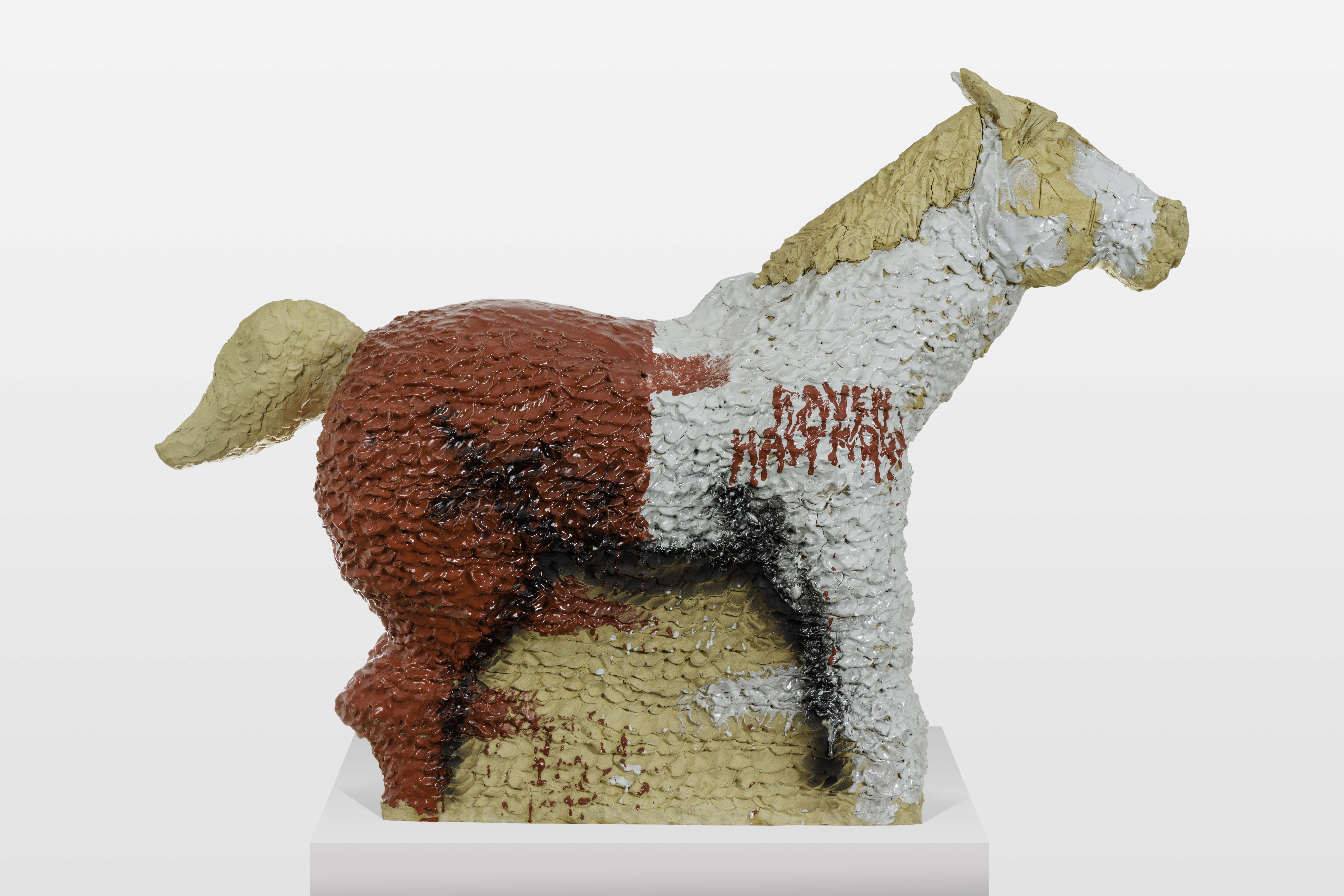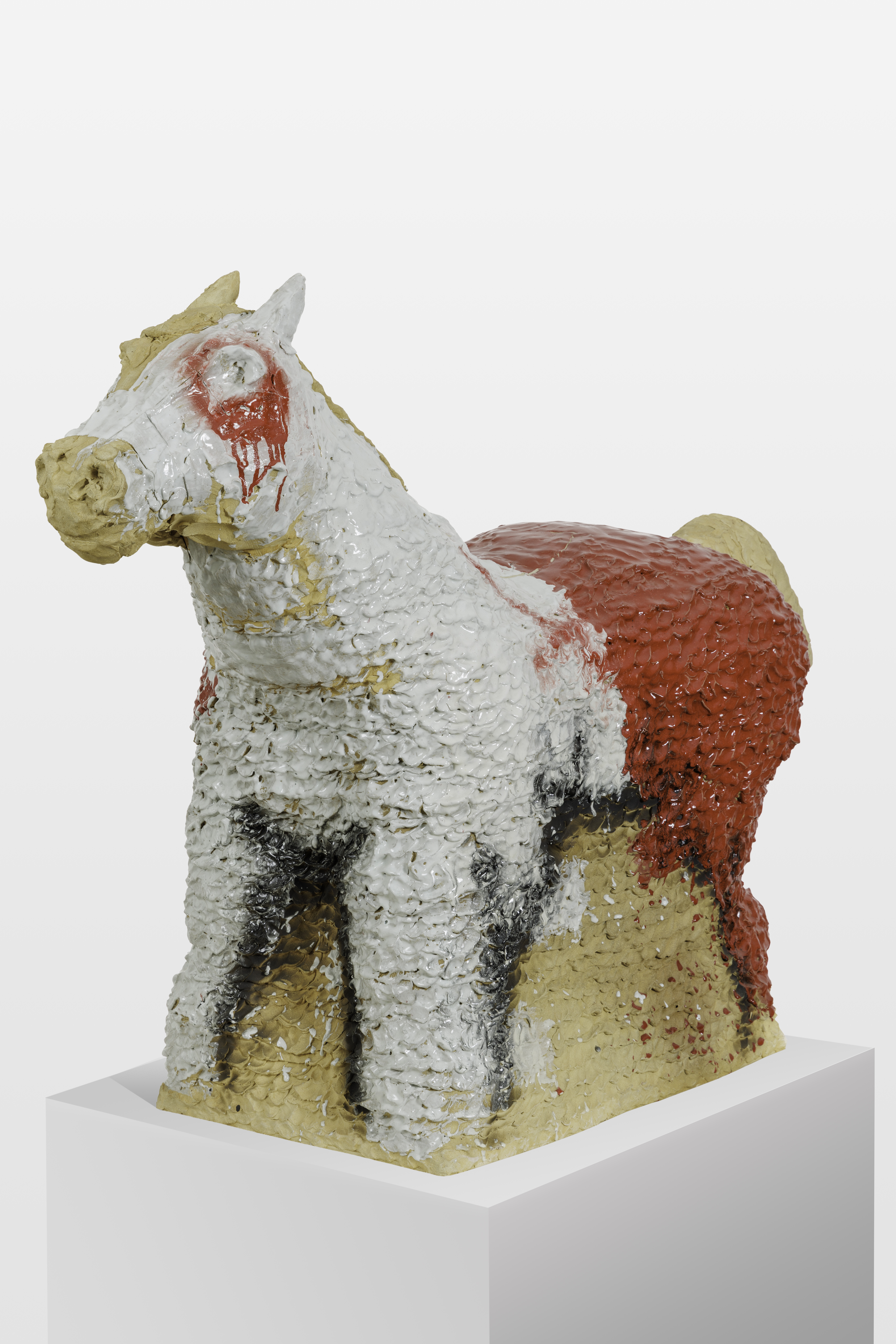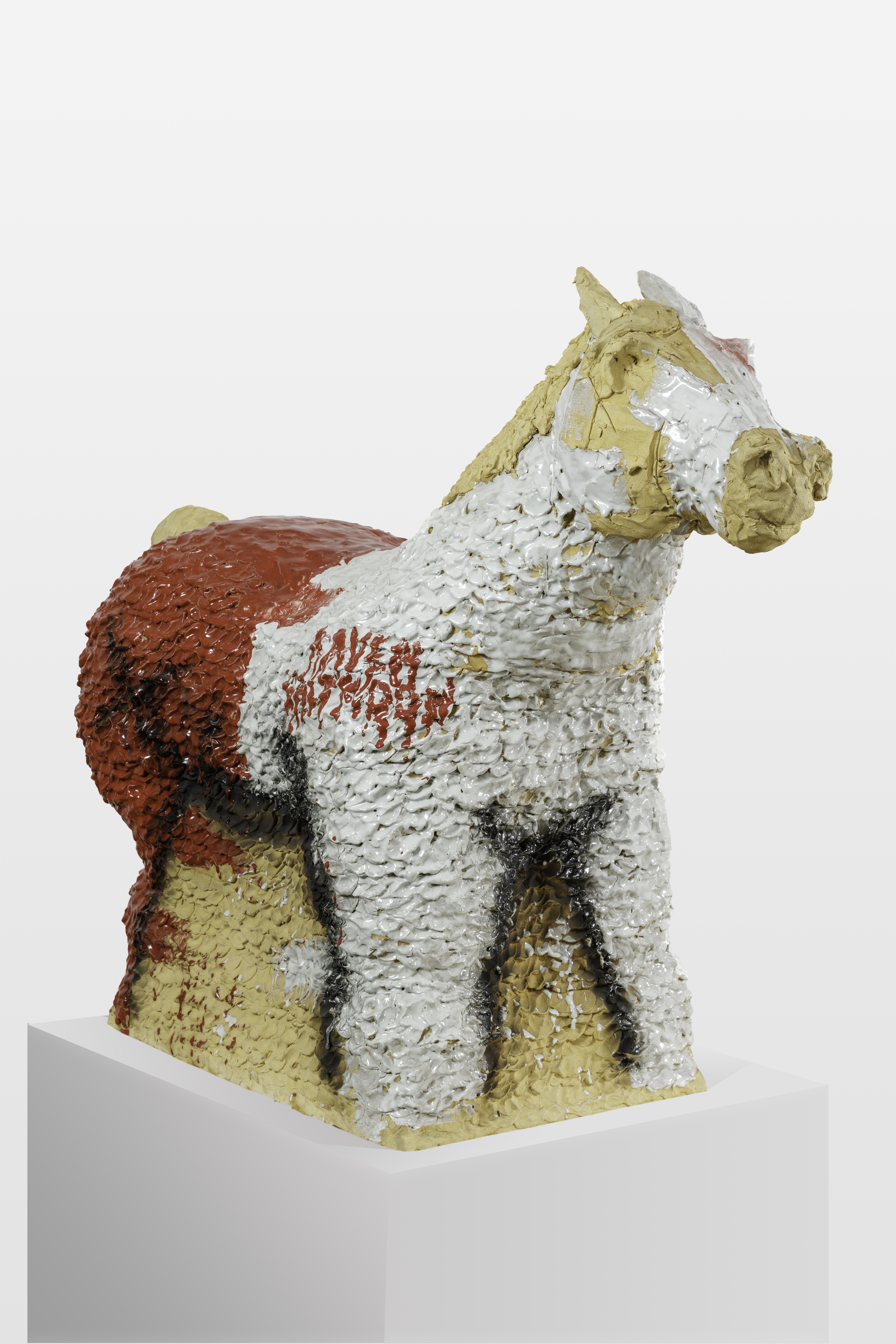 Raven Halfmoon (Caddo), Hacah'yosha' (light colored horse | Caddo), 2021. Stoneware and glaze, 48 × 68 × 23 in.