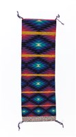 Melissa Cody (Navajo / Diné), Into the Depths, She Rappels, 2023. Wool warp, weft, selvedge cords, and aniline dyes, 87 × 51 ½ in.