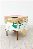 Matthew Kirk (Navajo), Drawing Table with Artist's Chair and Custom Stools, 2021. Painted plywood table and 2 stools, painted wooden chair, Table: 24 × 29 × 48 in.
