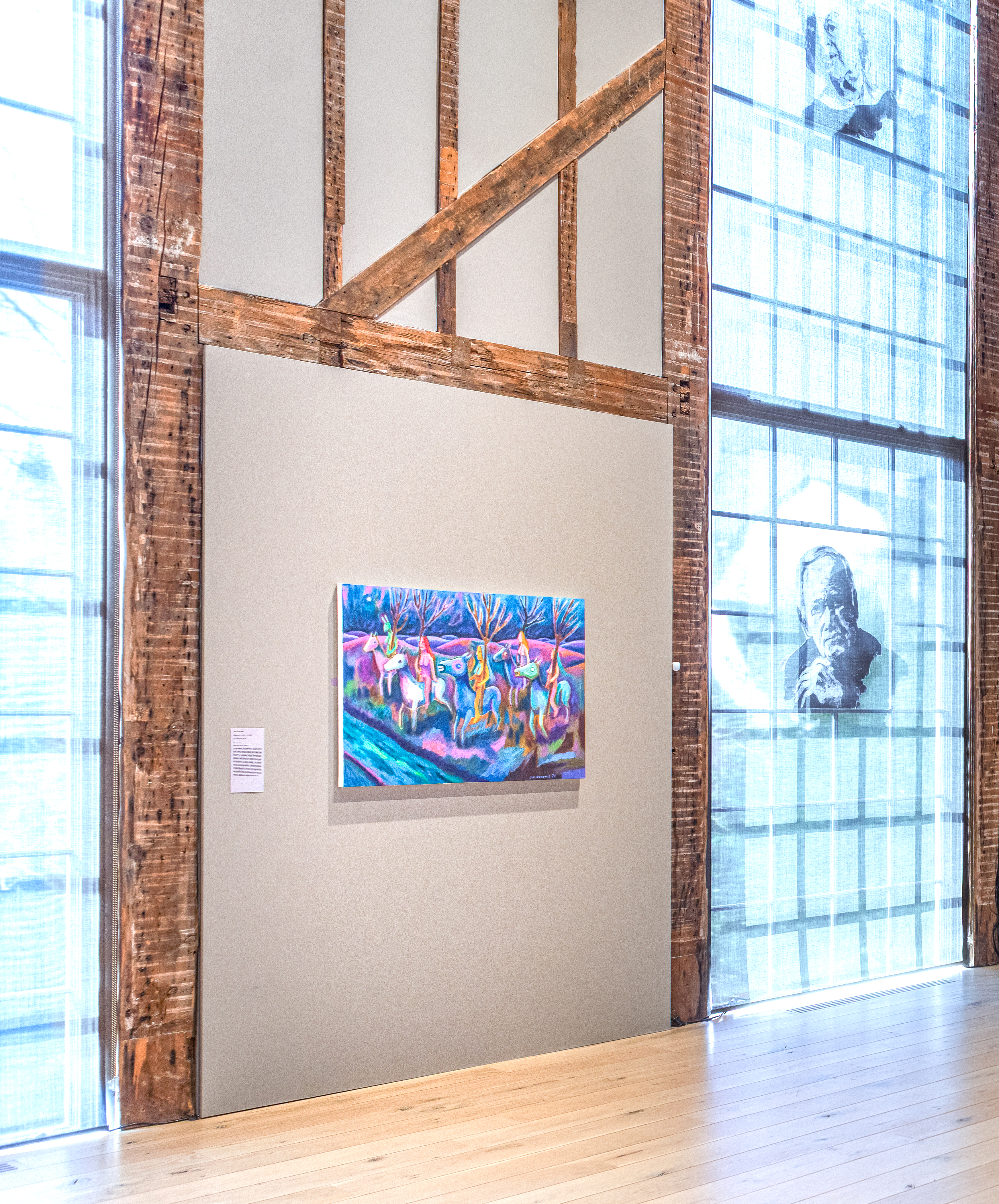 Jim Denomie (Lac Courte Oreilles band of Ojibwe), Tree People, 2020. Oil on canvas, 30 × 40 in.