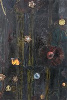 Gabrielle L'Hirondelle Hill (Métis), Herald, 2021. Tobacco-infused crisco oil, oil paint, and other materials, Flag: 40 ½ × 16 in.