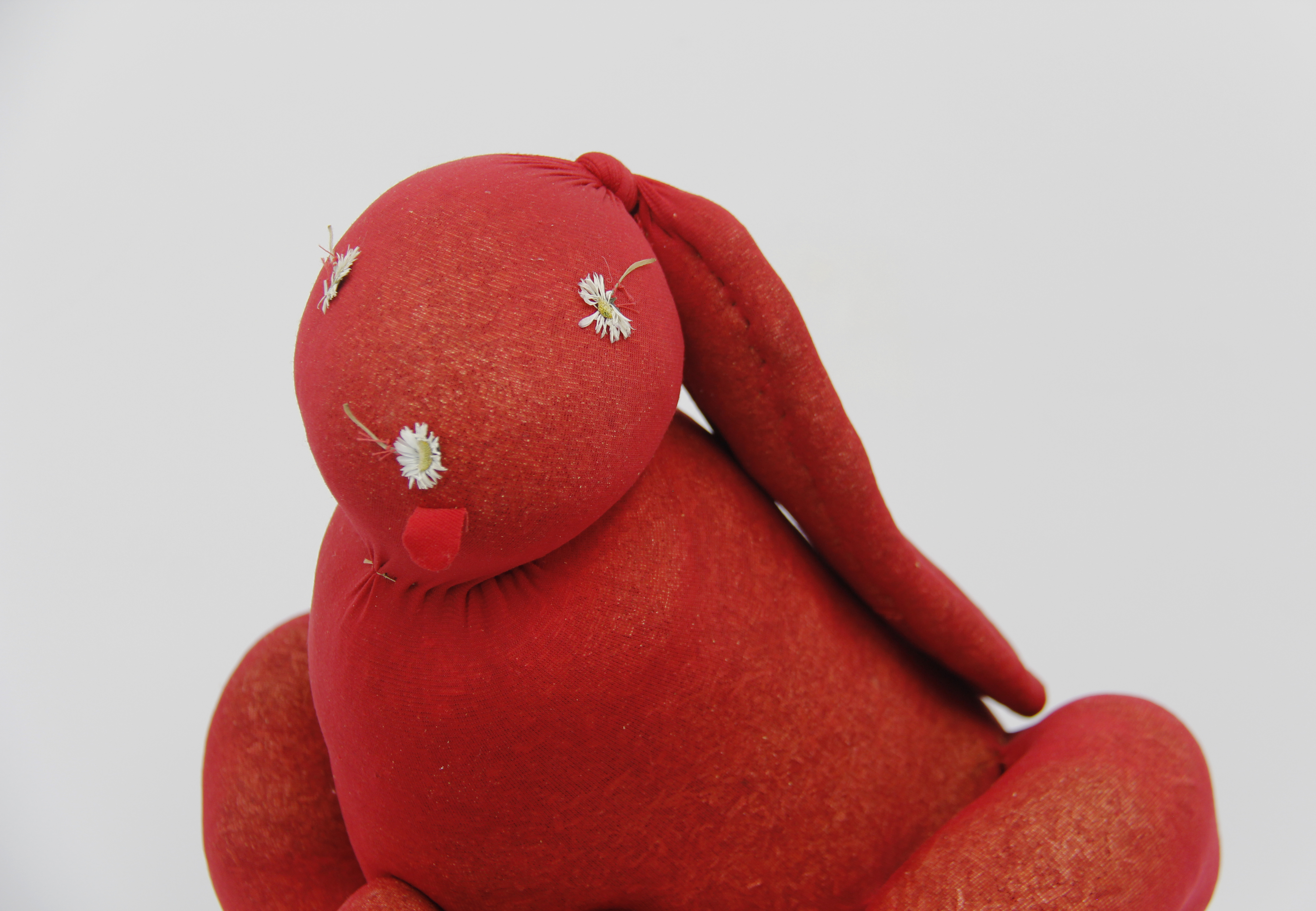 Pantyhose, tobacco, thread, dried flowers, and rabbit fur