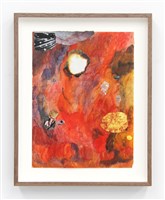 Gabrielle L'Hirondelle Hill (Métis), Spell #13, for vomiting anger, 2020. Tobacco-infused crisco oil, oil paint, magazine cutouts, and electrical tape on paper., 12 × 9 in.