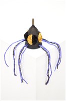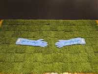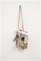 Audie Murray (Métis), Celestial Gloves, 2021. Worn work gloves, porcupine quills, various glass beads, acrylic paint, rabbit fur, tanned hide, 24 × 14 in.