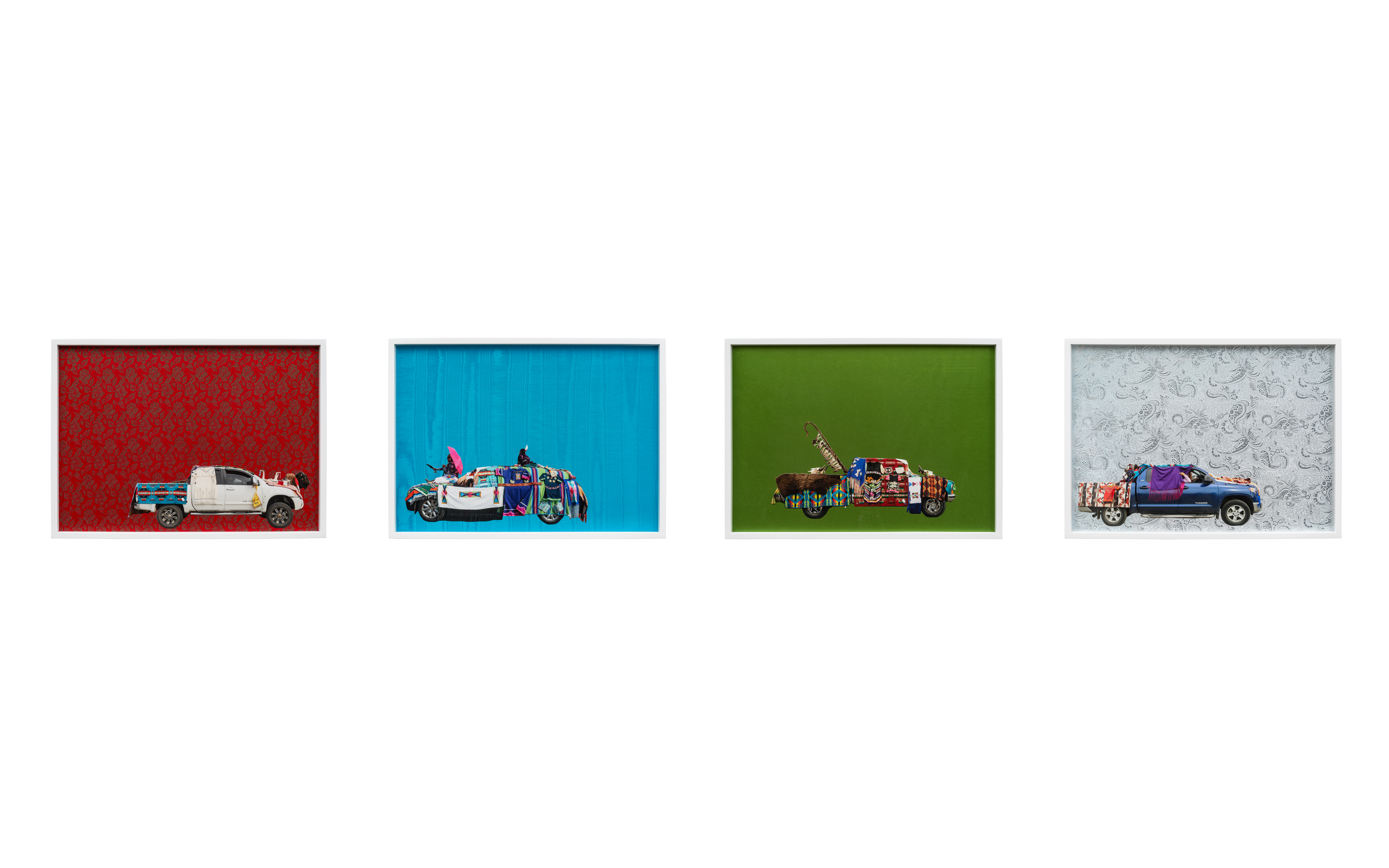 Wendy Red Star (Apsáalooke (Crow)), Duhpaapilak-axpiluupe (Twenty-two), 2021. Fabric with archival pigment photograph, Framed: 21 × 29 in.