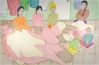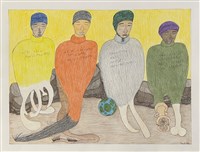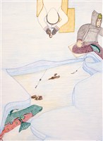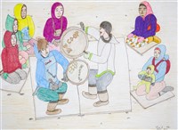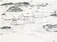 Shuvinai Ashoona (Inuit), Composition (Building on the Land), 1993–94. Ink on paper, 10 × 13 in.