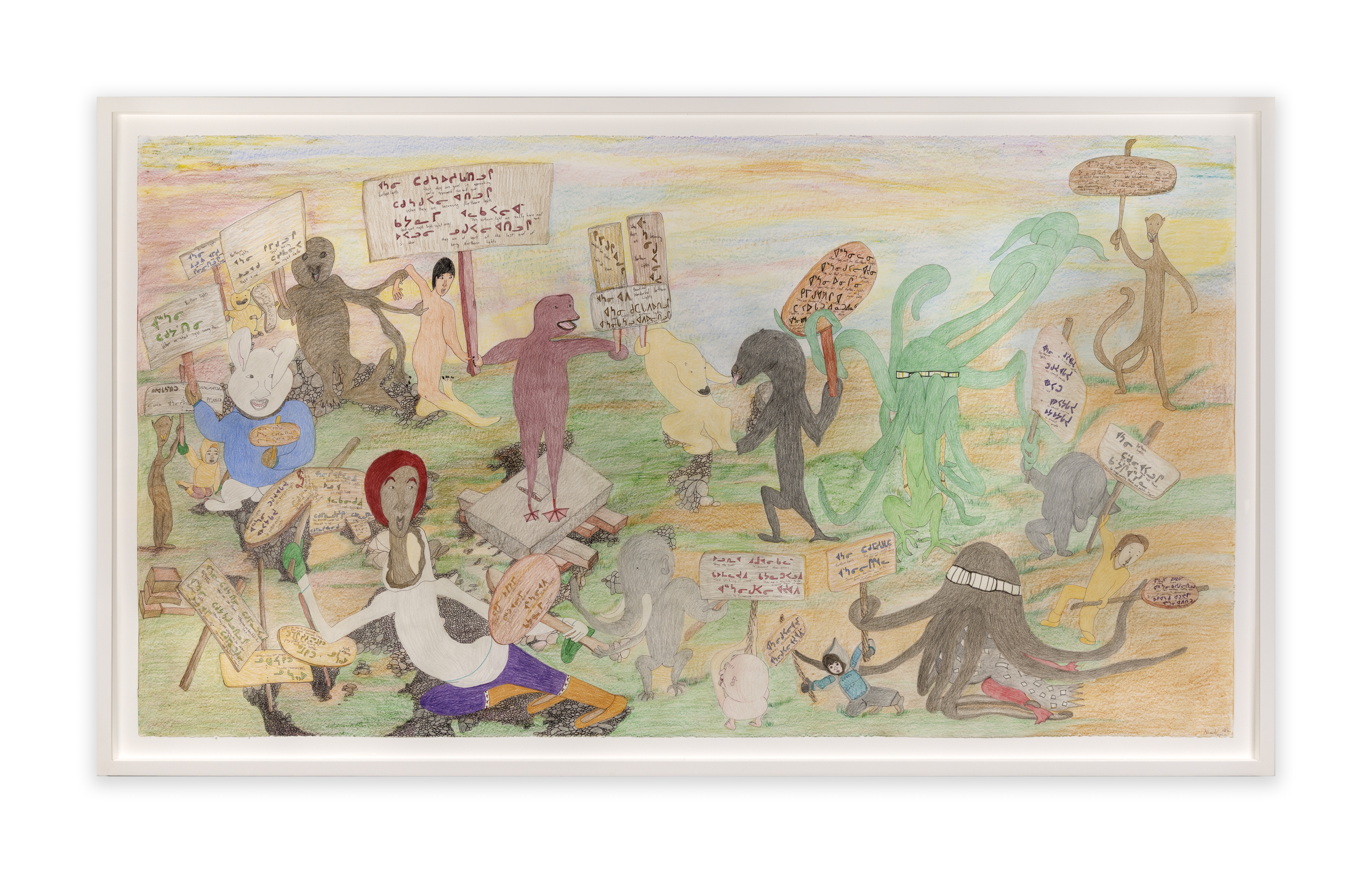 COMPOSITION (WOMAN BATTLING WALRUS, ELEPHANT, OCTOPUS AND BIRD CREATURE)