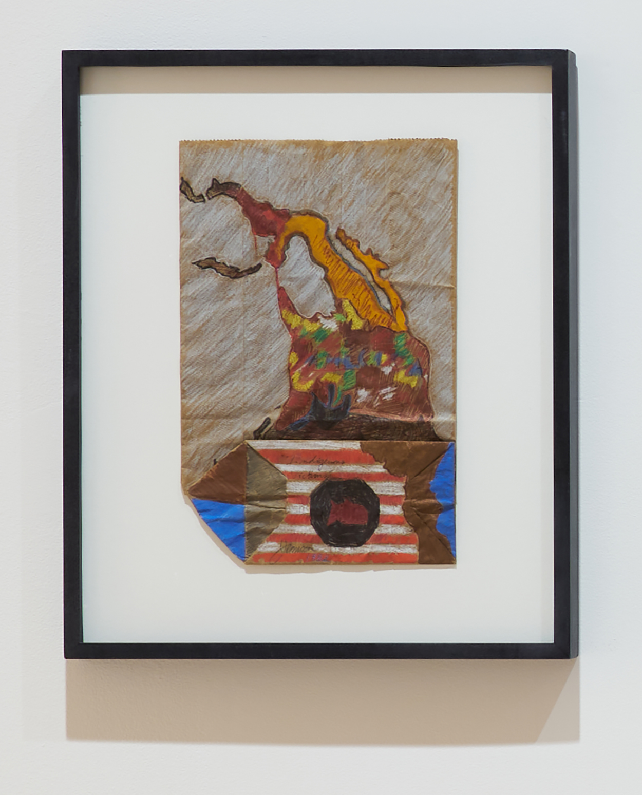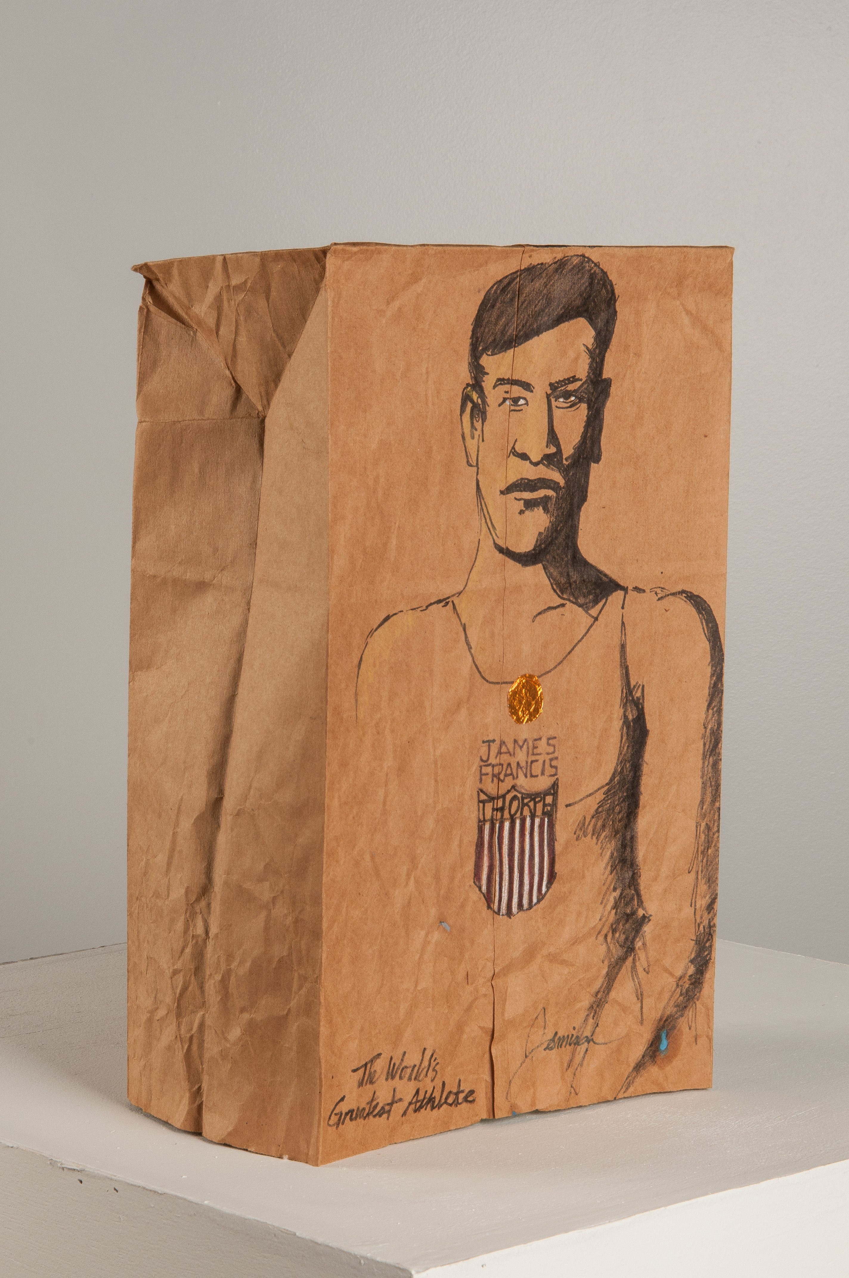 Acrylic, Marker, and Colored Pencil on Paper Bag