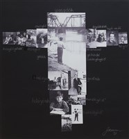 G. Peter Jemison (Enrolled member of the Seneca Nation of Indians, Heron Clan), In Our Language, 2019. Photo Assemblage, China Marker on Canvas, 52 × 48 in.