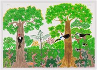 Aycoobo (Columbian), Calendario, 2022. Acrylic on paper, 34 × 46 in.
