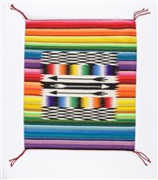 Venancio Aragón (Diné), Two-faced checkers, 2022. Commercial and vegetable dye (Natural dye materials include cochineal, dock root, indigo, juniper bark, logwood, madder root, onion skins, Navajo tea, rabbit brush, and sage brush.), 33 ½ × 24 in.