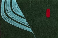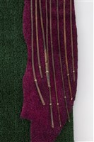 Teresa Baker (Mandan/Hidatsa), Praire Point, 2022. Spray paint, yarn and willow on artificial turf, 68 × 35 in.