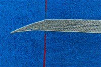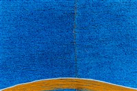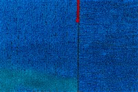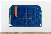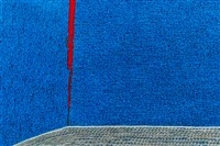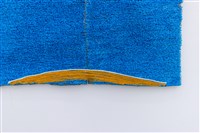 Teresa Baker (Mandan/Hidatsa), Untold (View From The Tower Studio), 2022. Yarn, thread, and spray paint on artificial turf, 24 ½ × 32 in.