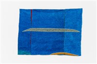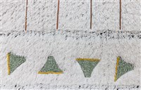 Teresa Baker (Mandan/Hidatsa), Fogo, 2022. Buckskin, Acrylic, Yarn, Willow and Artificial Sinew on Artificial Turf , 49 × 34 in.