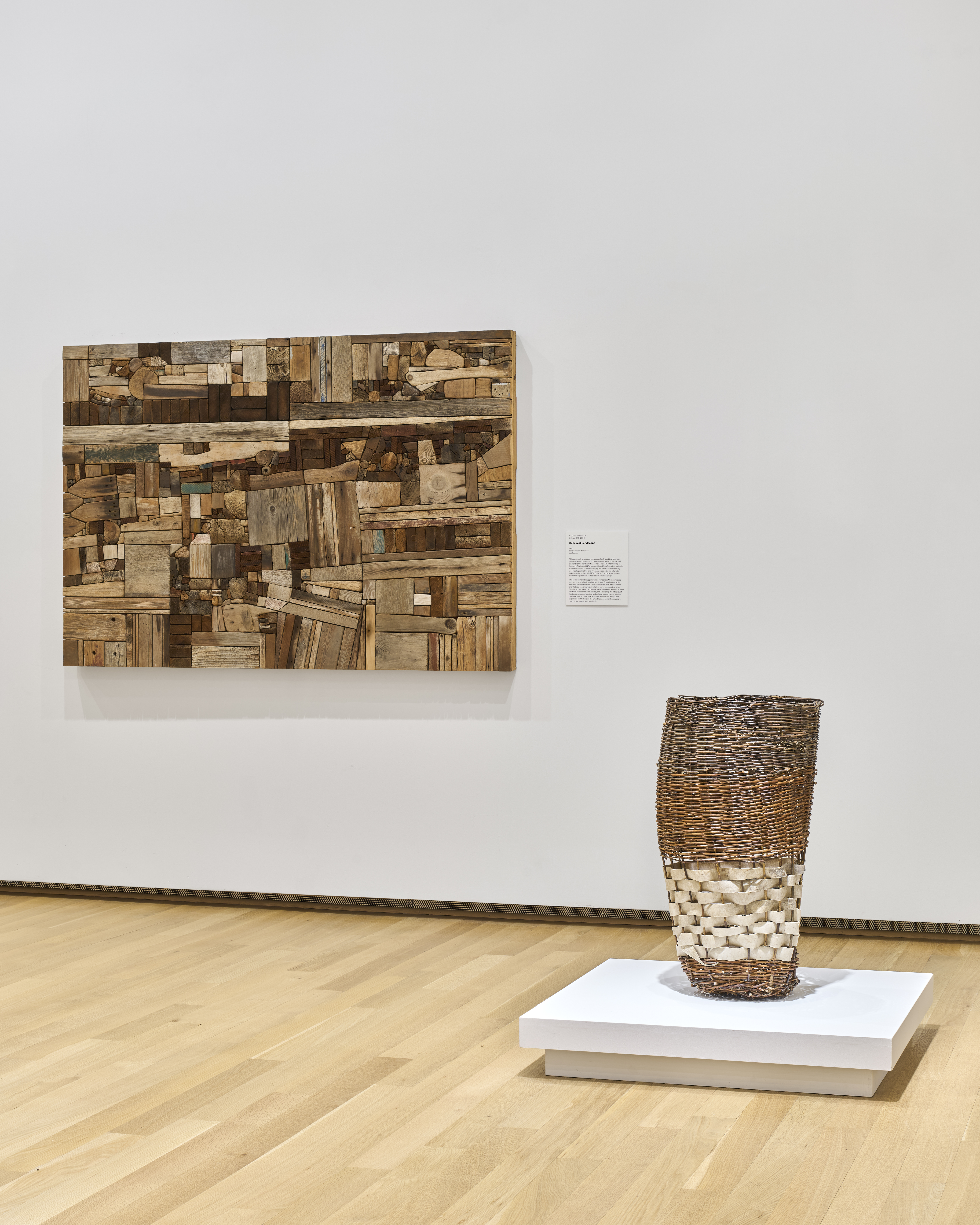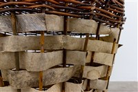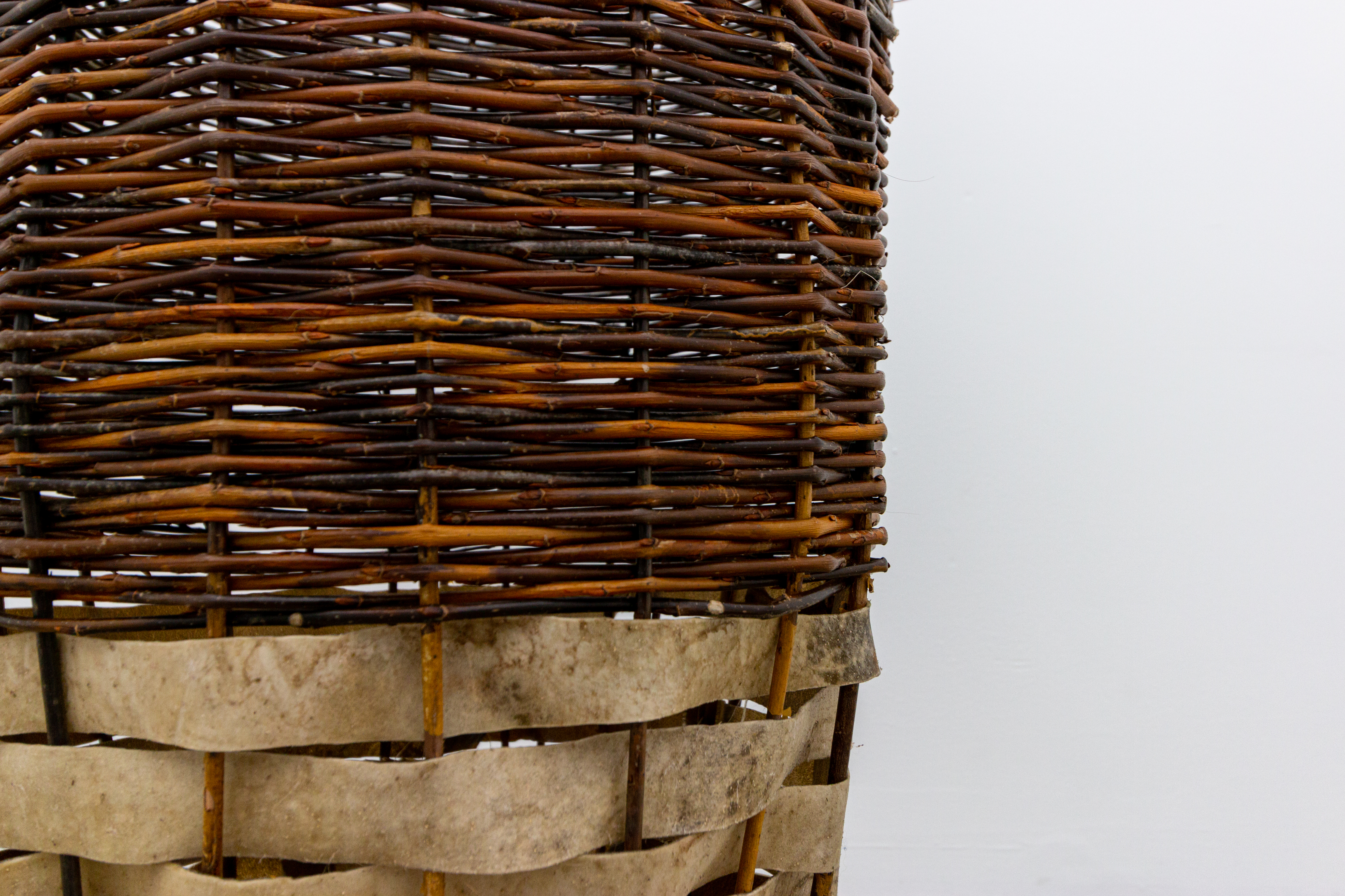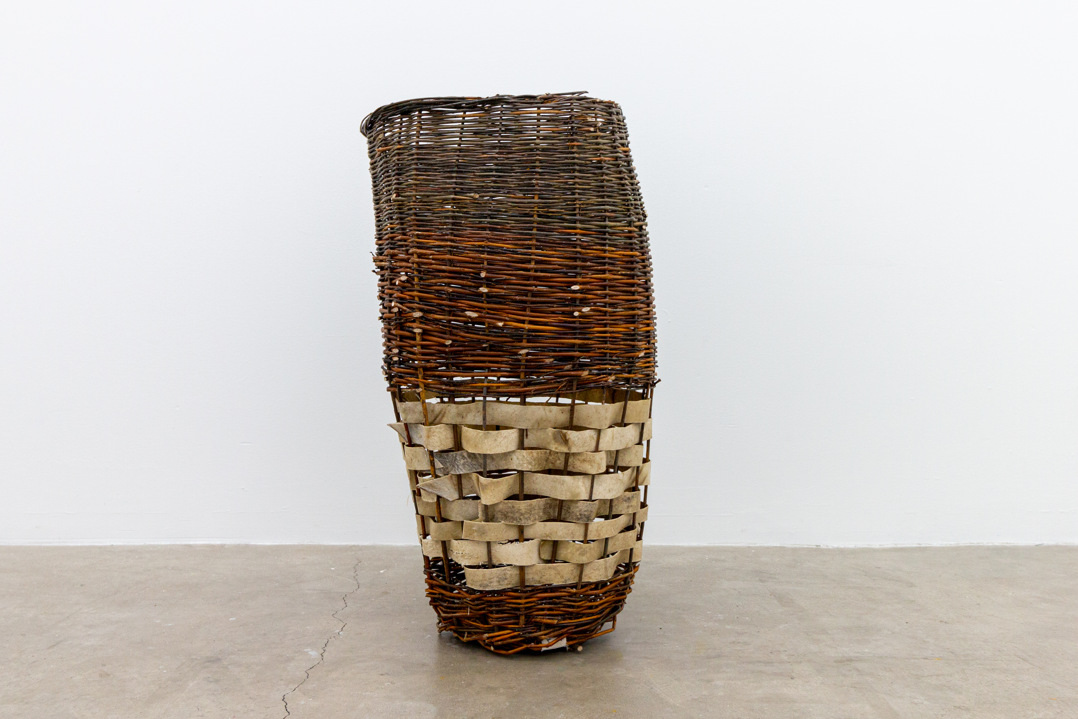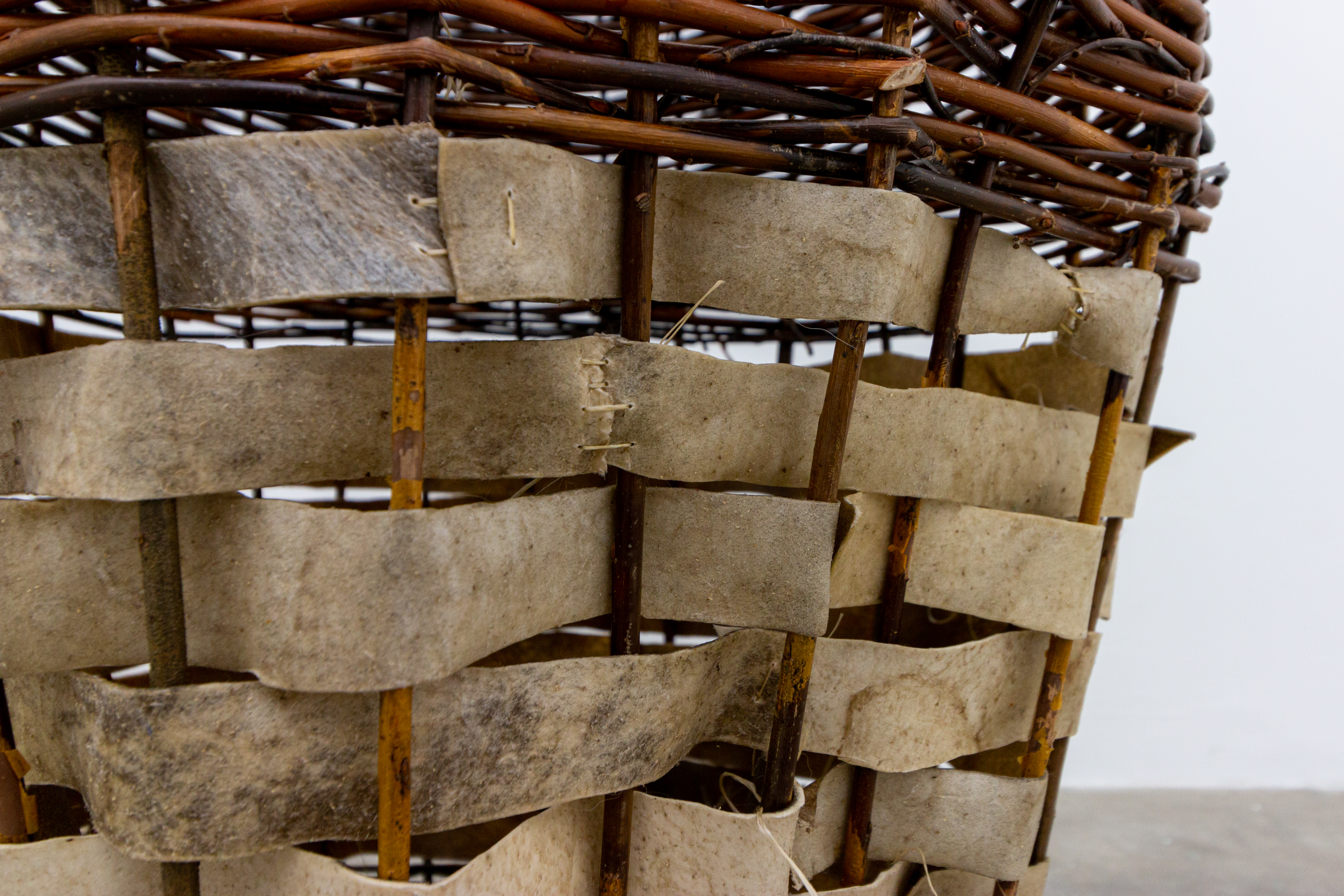 Teresa Baker (Mandan/Hidatsa), Twist, 2022. Buffalo rawhide, willow and artificial sinew, 30 ½ × 16 × 15 ½ in.