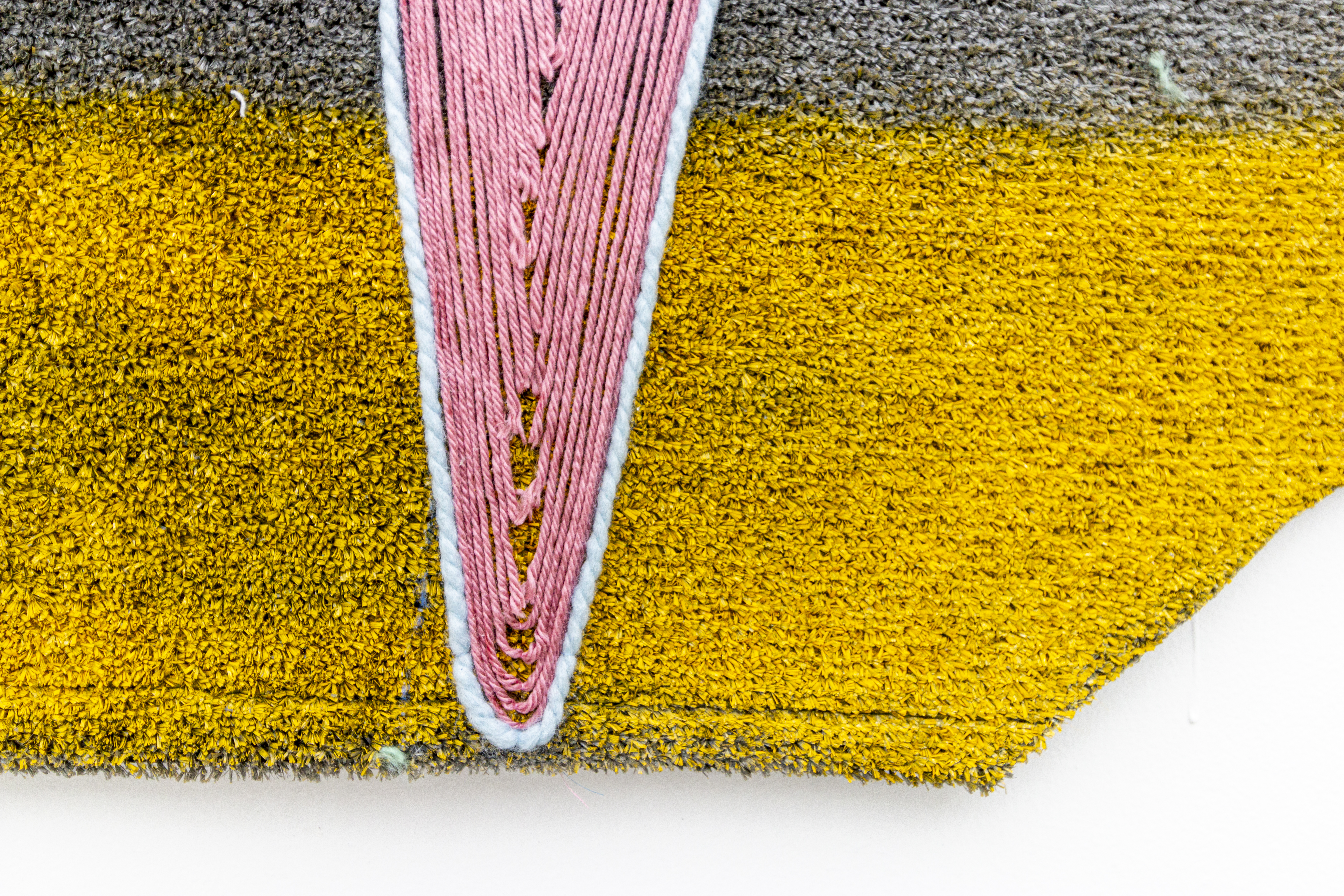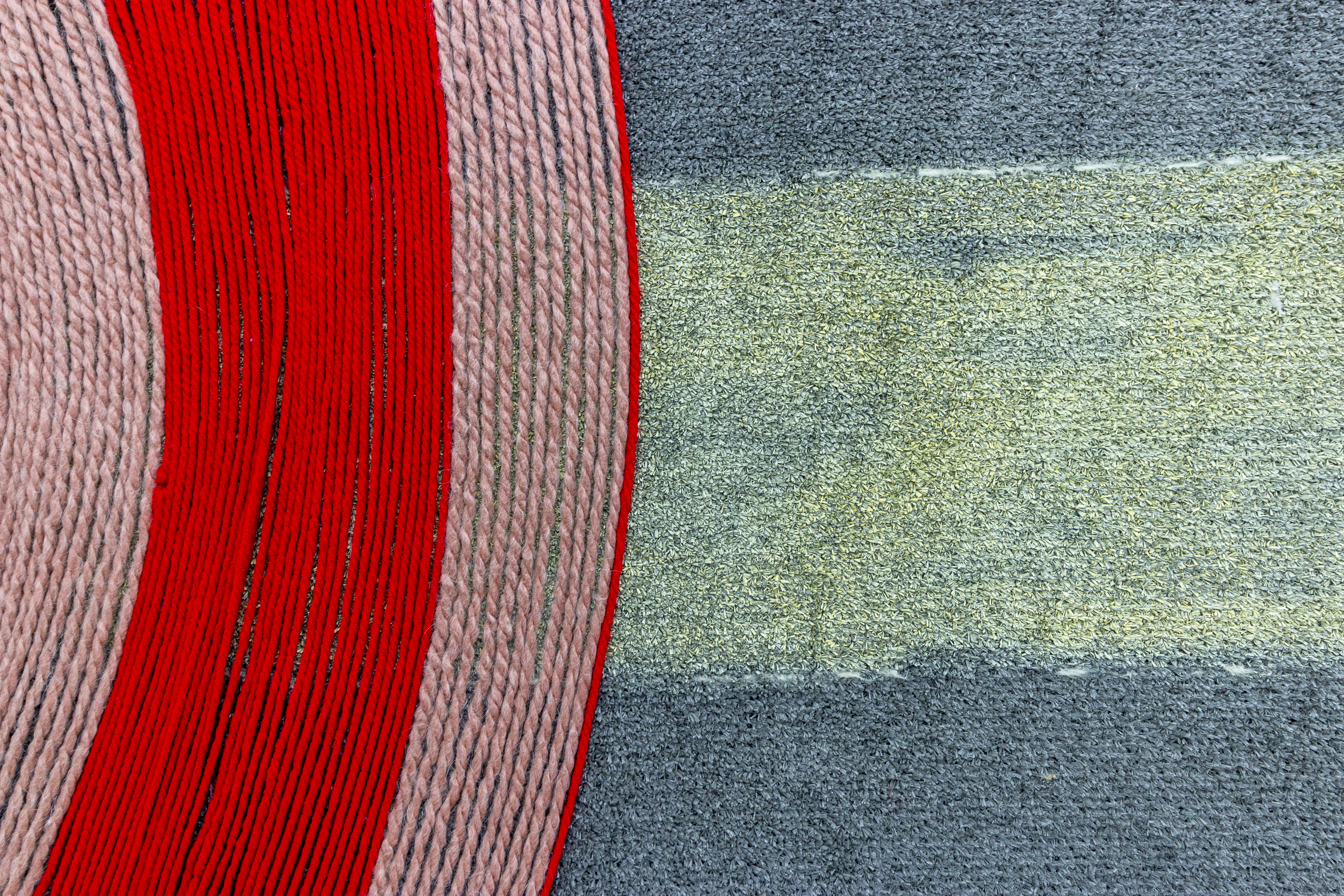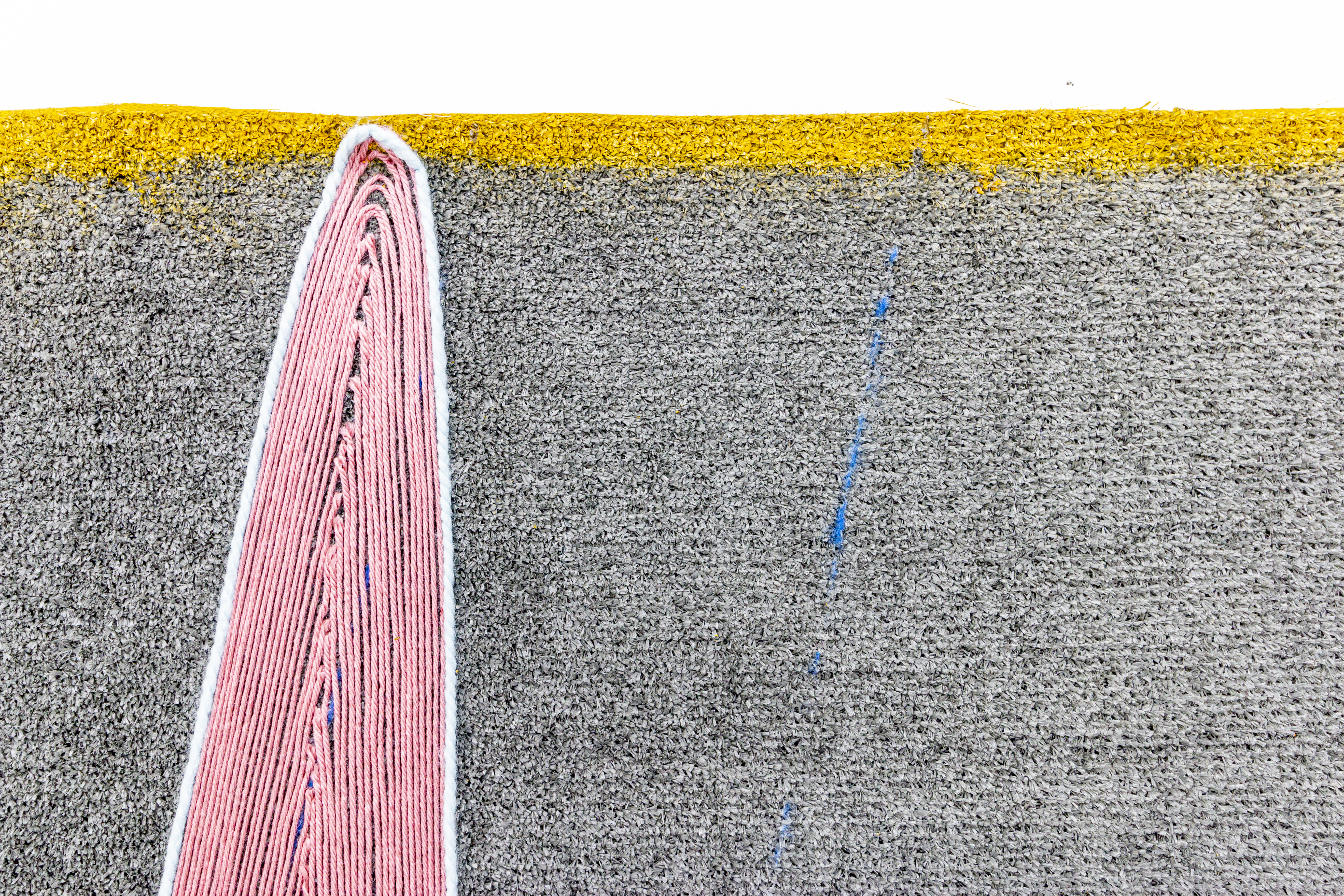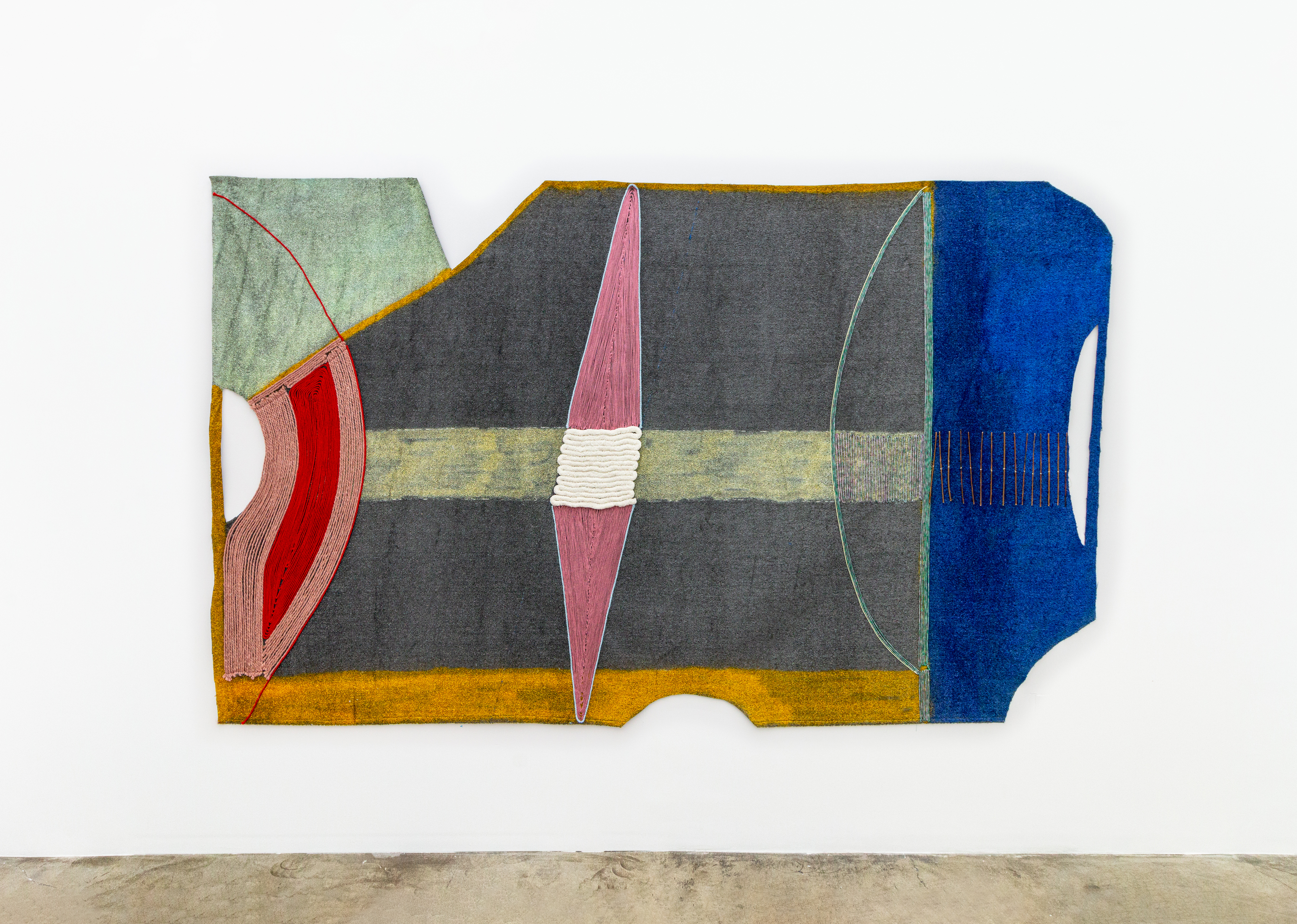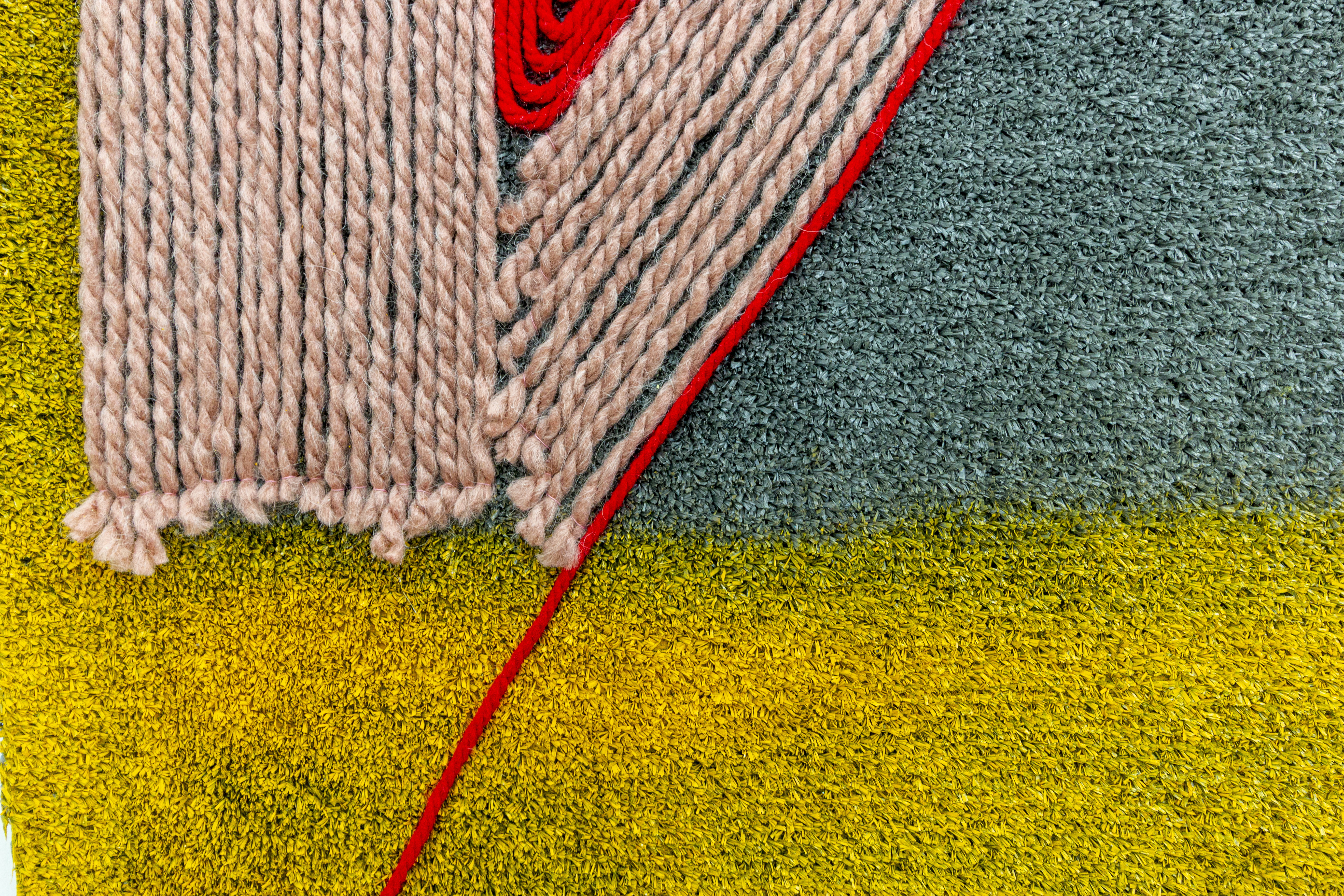 Teresa Baker (Mandan/Hidatsa), Field Notes, 2022. Willow, spray paint, and yarn on artificial turf, 74 × 120 in.