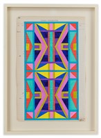 Crow geometric parflech drawing on antique ledger dating 1890, 2022