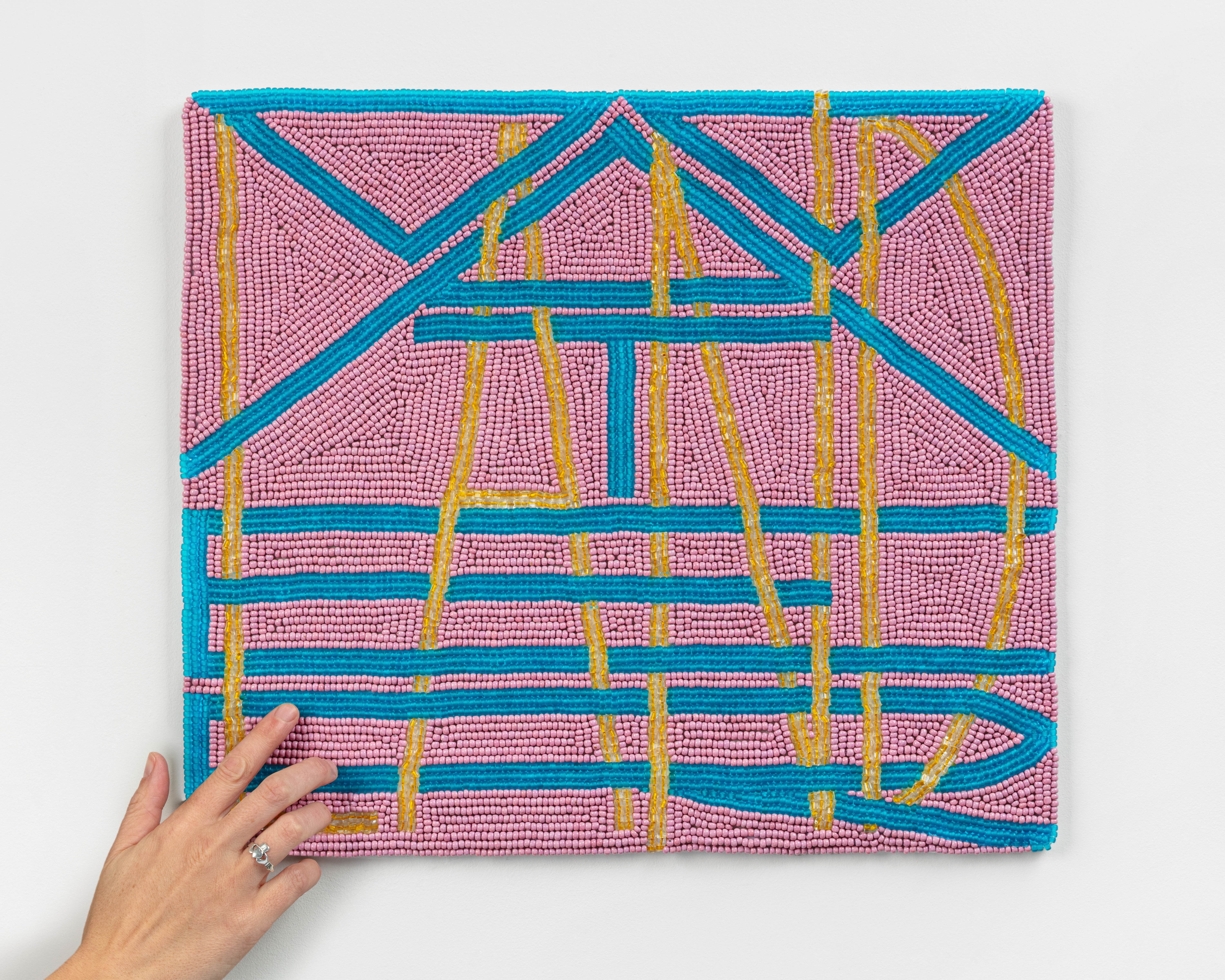 Vintage Venetian glass beads, nylon thread, cotton bias tape, industrial felt