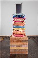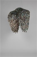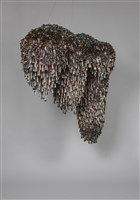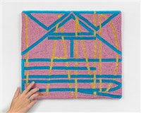 Marie Watt (Seneca and German-Scot), Interwoven (Cheyenne Pink), 2022. Vintage Venetian glass beads, nylon thread, cotton bias tape, industrial felt, 16 × 18 in.