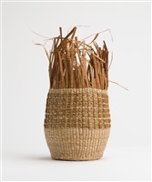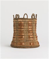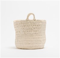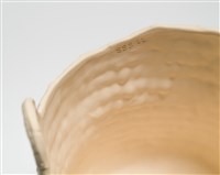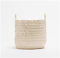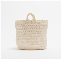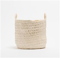 Sara Siestreem (Hanis Coos), ghost II, 2022. Slip cast ceramic basket, 8 ¾ × 8 ¼ × 10 in.