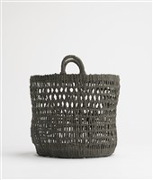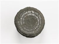 Sara Siestreem (Hanis Coos), transtemporal clam basket, 2022. 3D Printed scan of a hand woven basket (Nylon 12 Powder), 9 ¼ × 8 × 8 in.