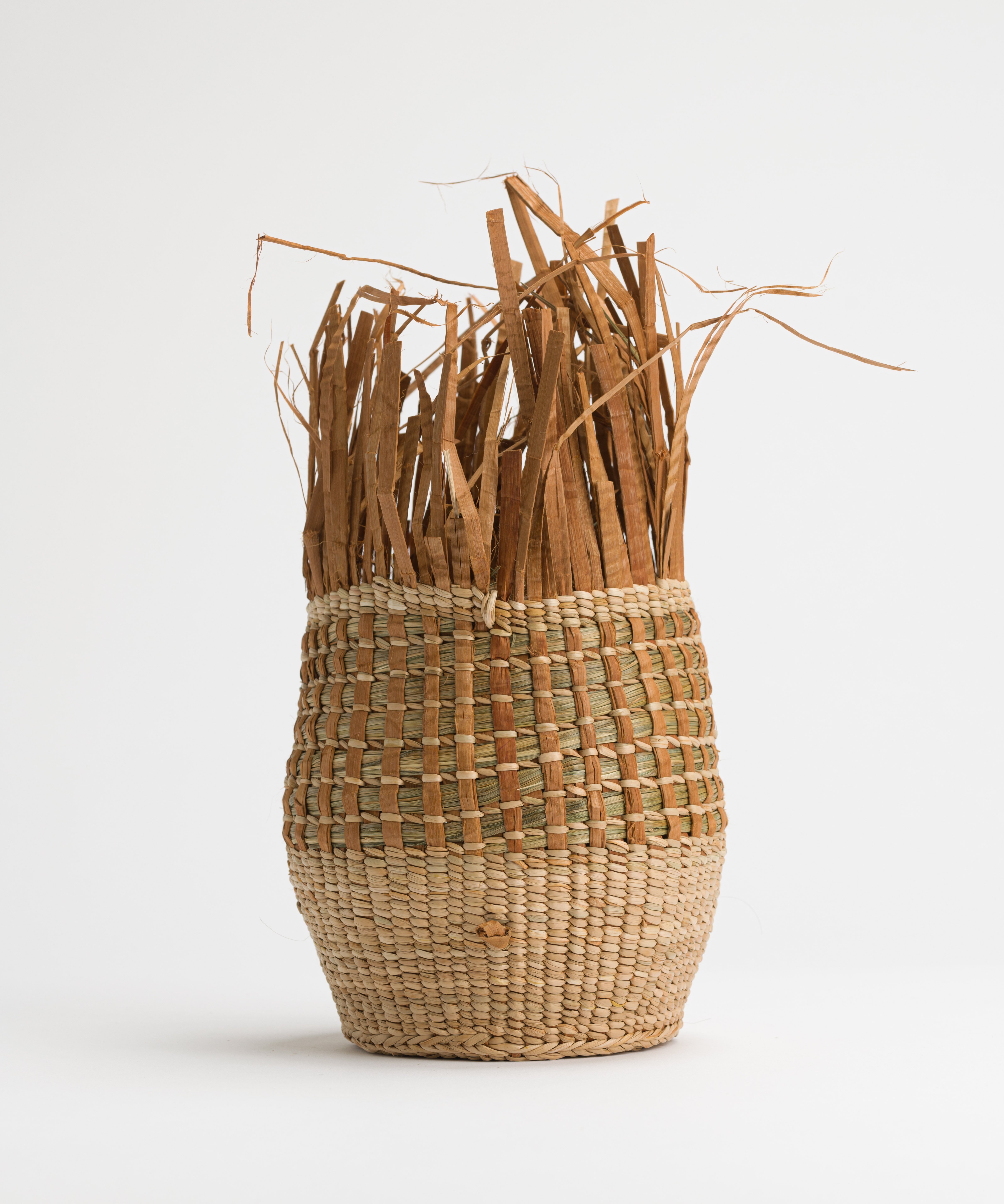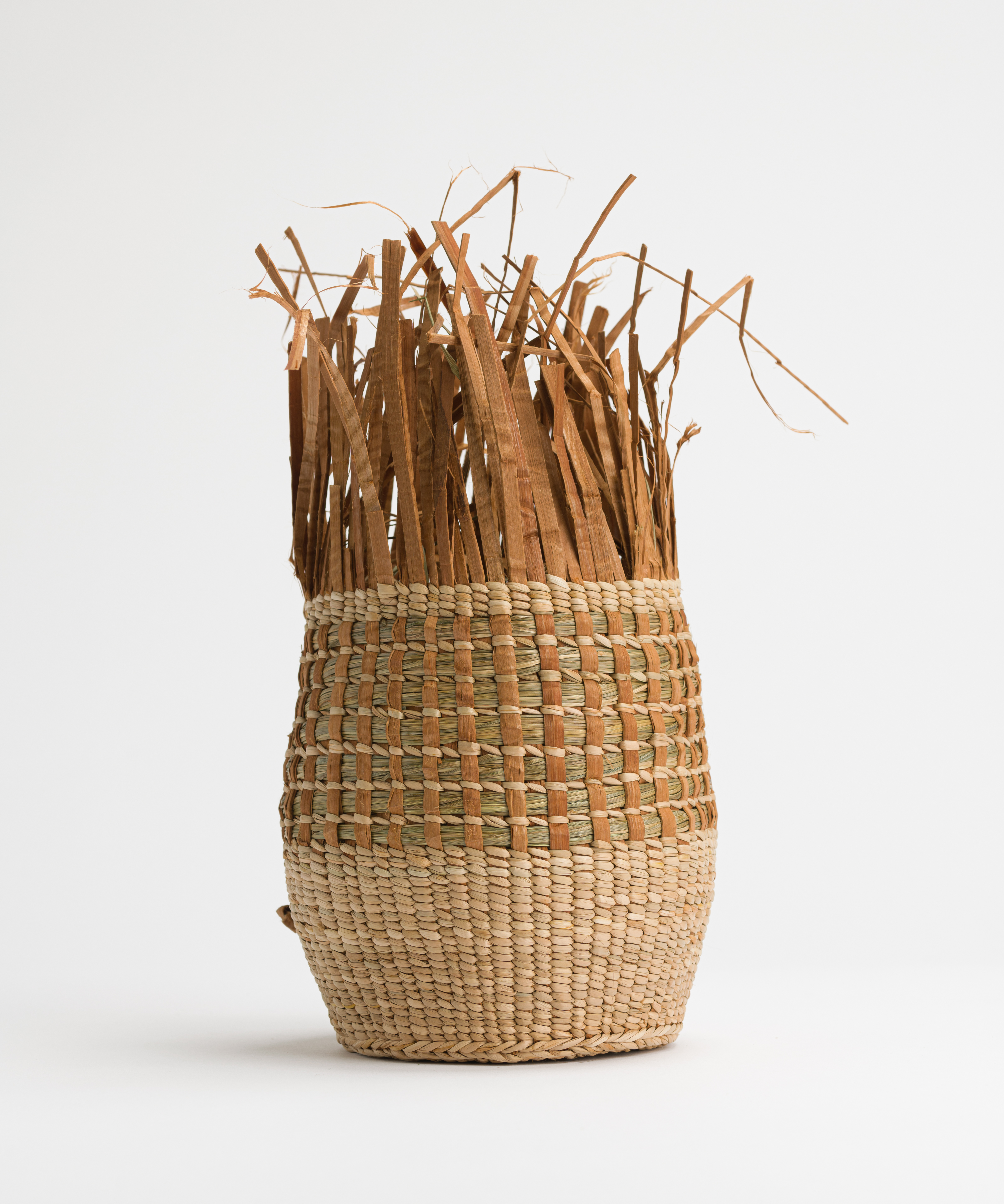 Sara Siestreem (Hanis Coos), *this one has to do with forest fires , 2017-2022. Red Cedar Bark (Siuslaw Forest), Sedge (Umpqua), Sweet Grass (Linton) , 11 ½ × 6 × 5 ½ in.