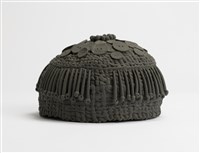 Sara Siestreem (Hanis Coos), transtemporal dance cap (ARETHA FRANKLIN, reigns supreme), 2022. 3D printed scan of a hand woven dance cap (Nylon 12 Powder) , 5 × 8 × 6 in.