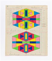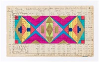 Crow geometric parflech drawing on antique ledger dating 1890, 2022