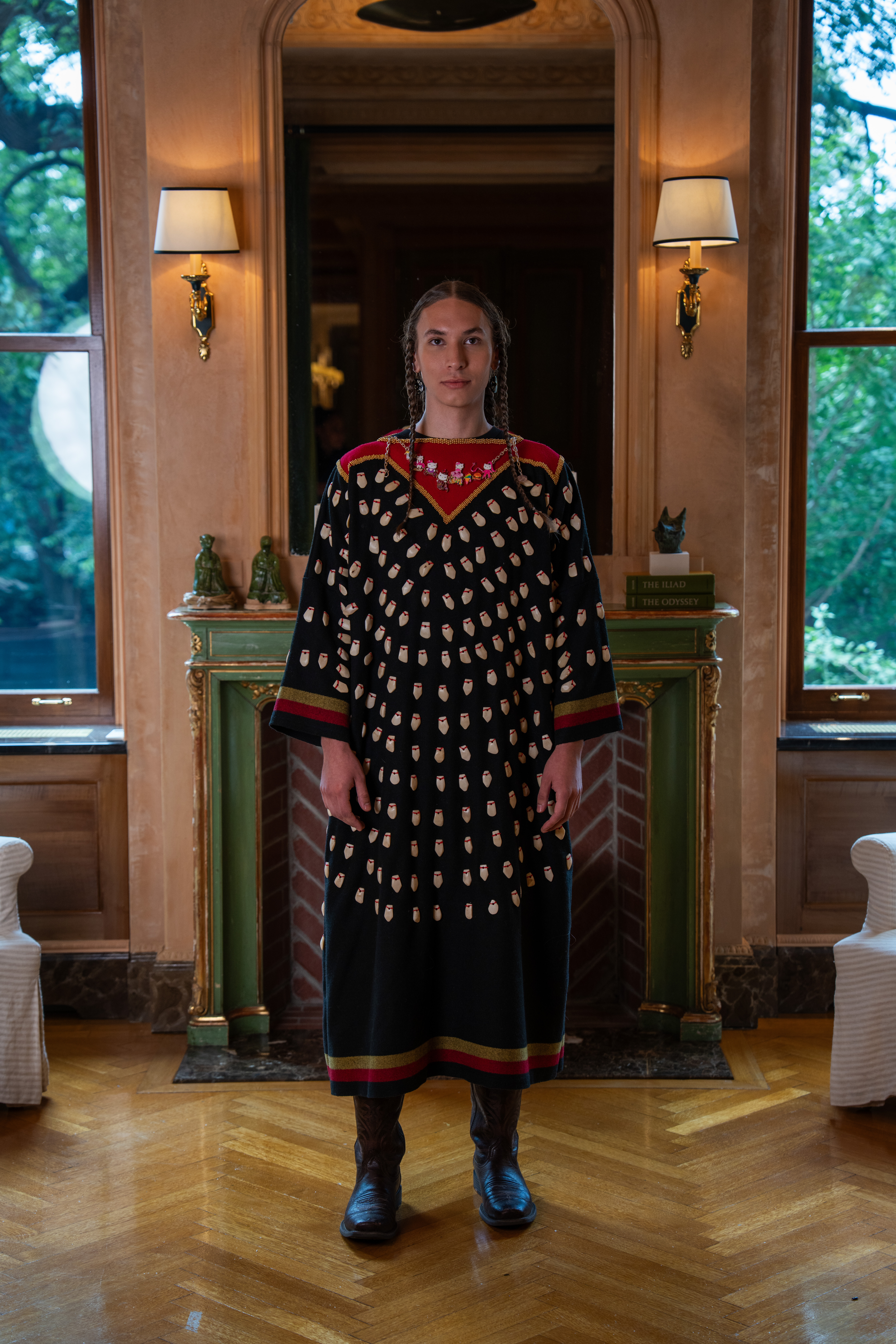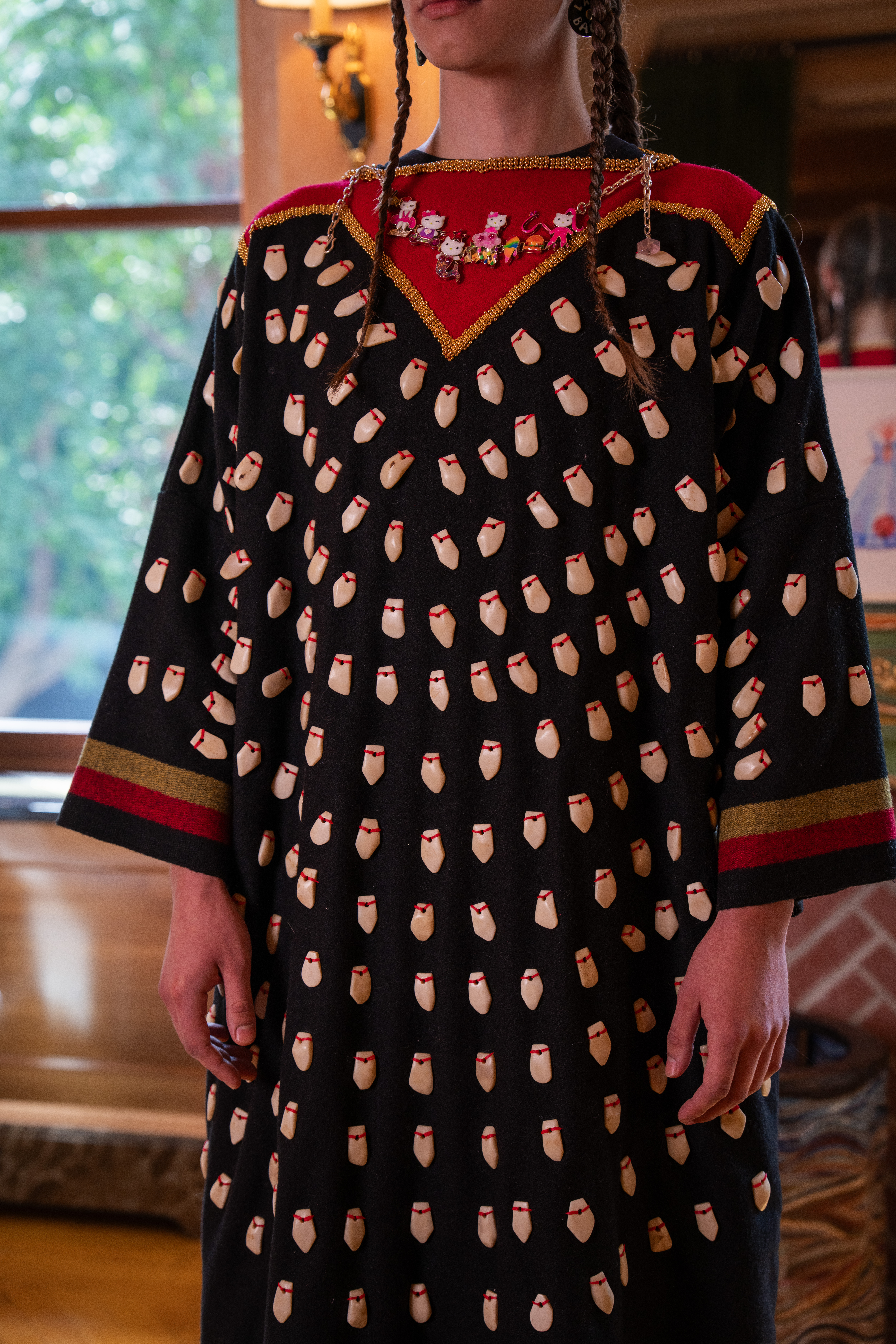 Black wool trade cloth and elk teeth