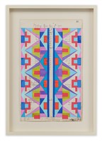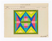 Crow geometric parflech drawing on antique ledger dating 1890, 2022