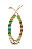 Elias Jade Not Afraid (Apsáalooke (Crow)), Necklace, 2023. Glass beads, leather and elk teeth.