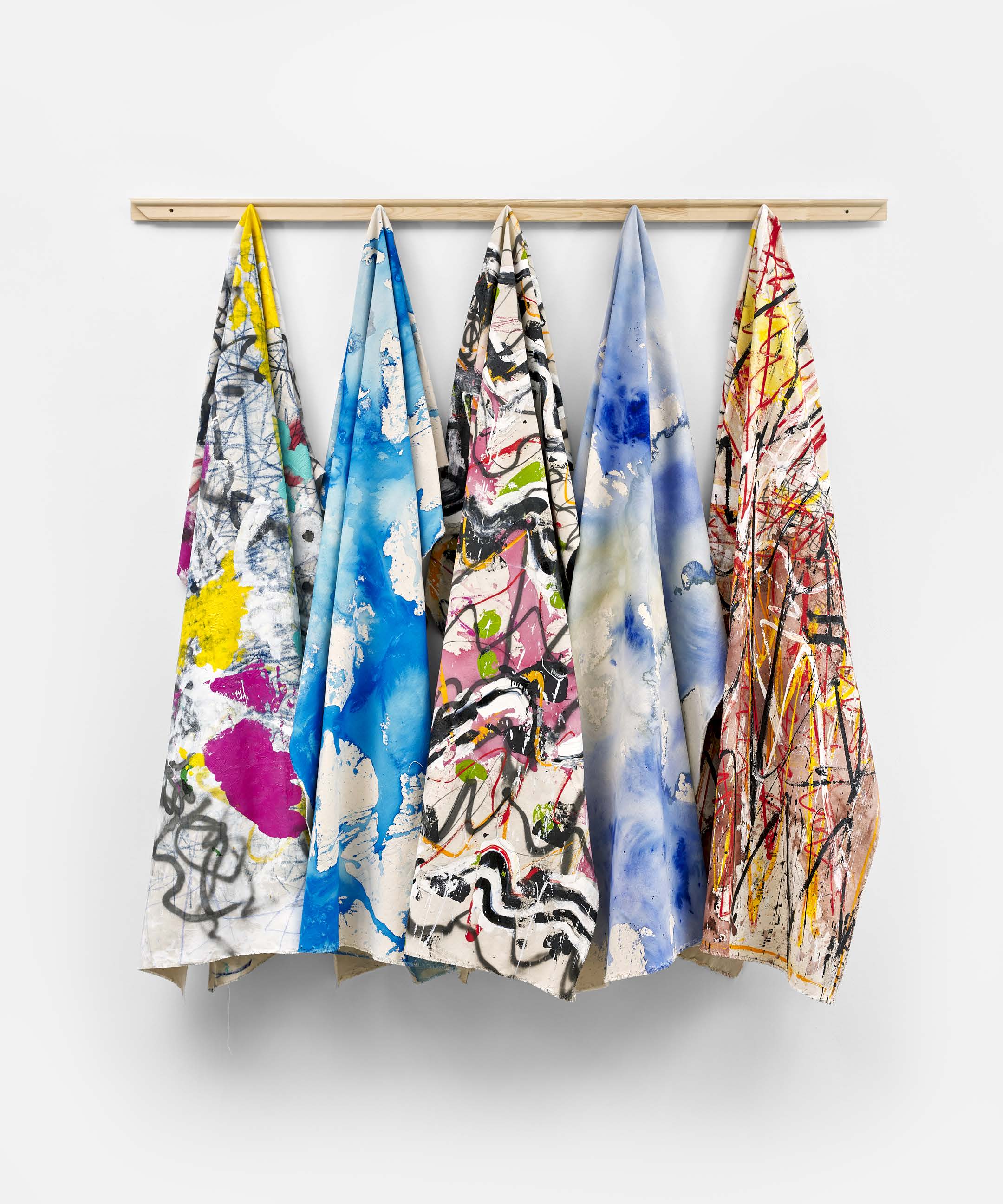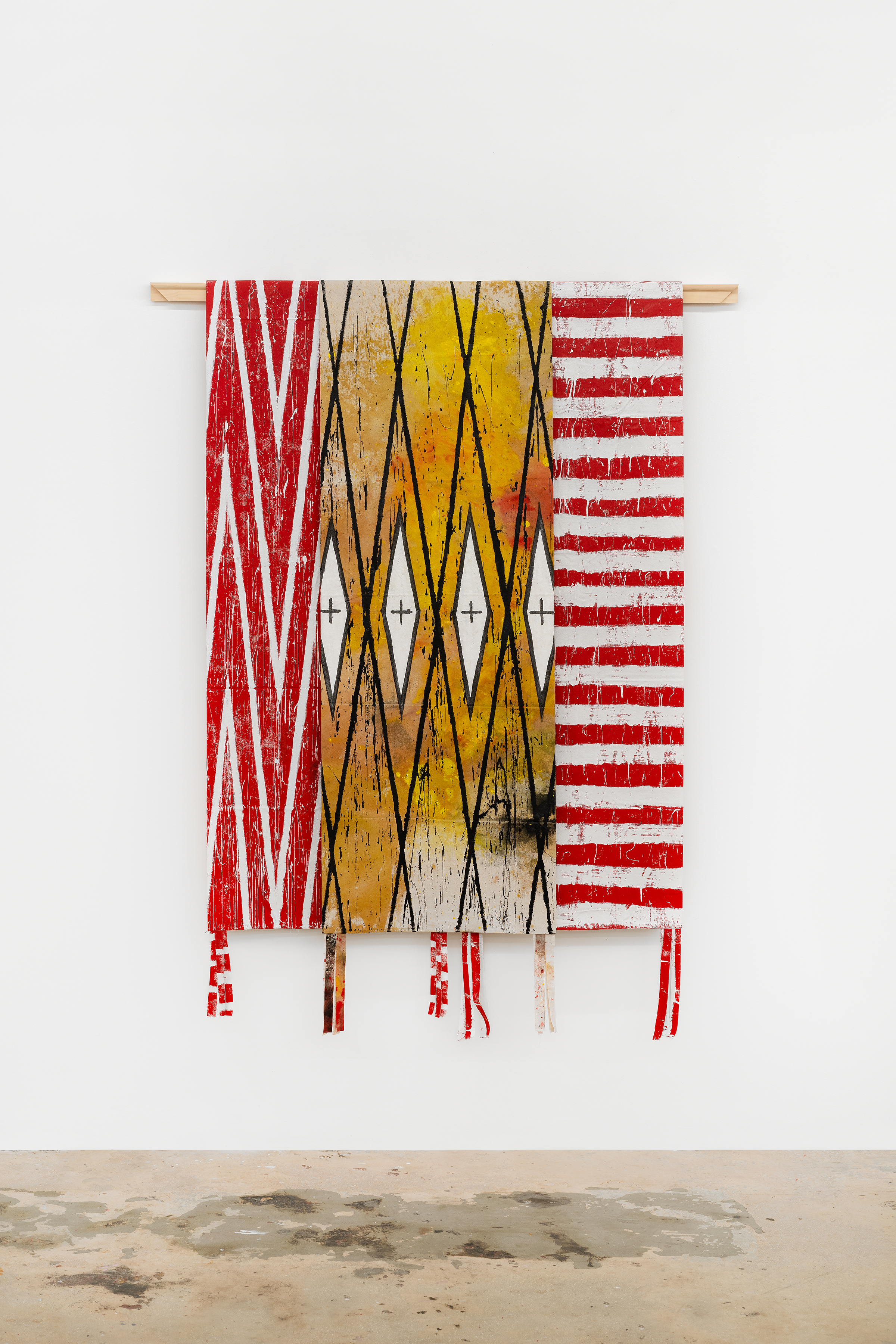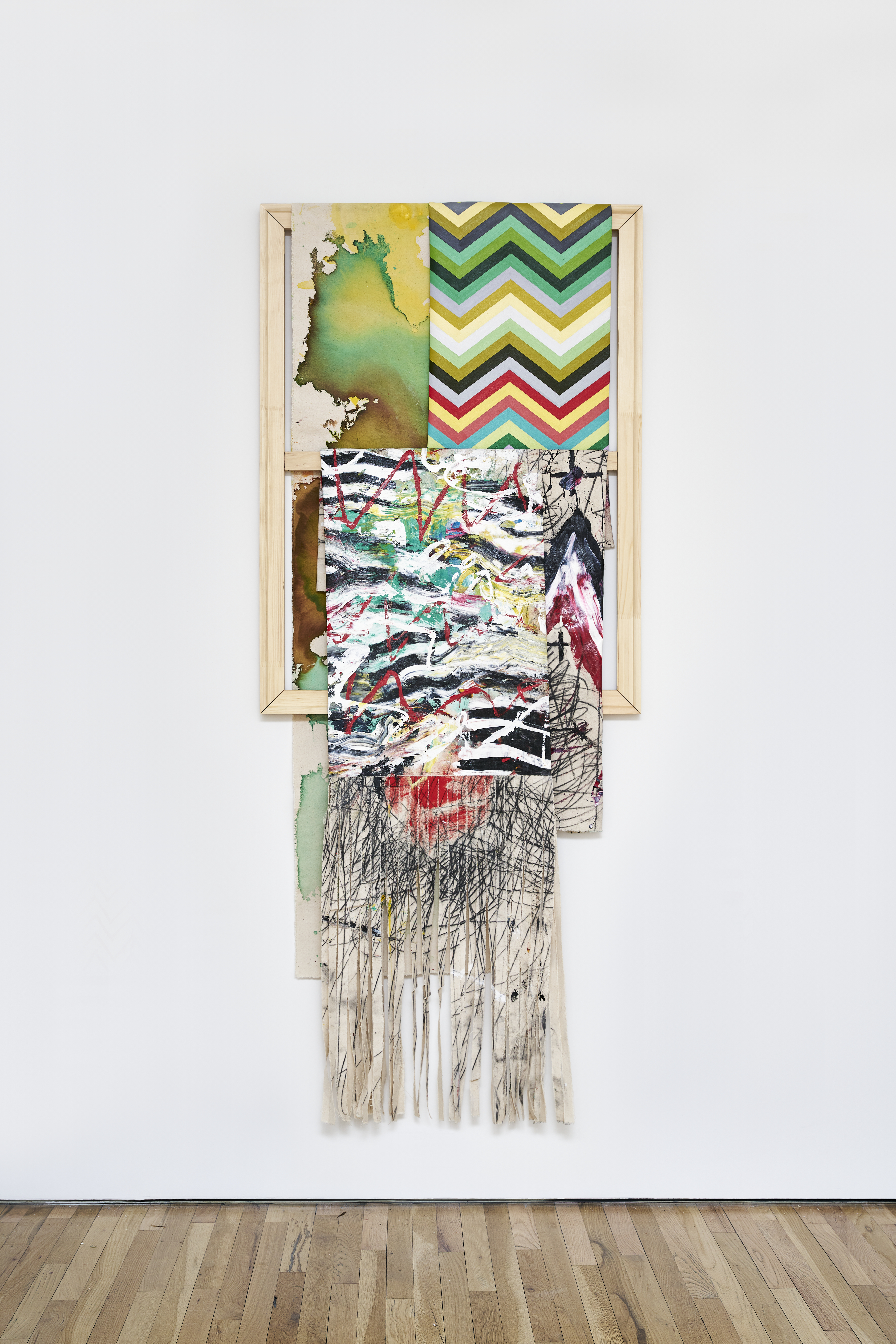 Acrylic, enamel, oil stick, charcoal, spray paint, natural earth pigment, acrylic dispersion on canvas, wood stretcher bar