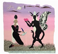 Javier Morales Casas (Columbian), THE REVELATION OF THE LEFT-HANDED, 2023. Oil and acrylic on wood , 24 ½ × 25 in.