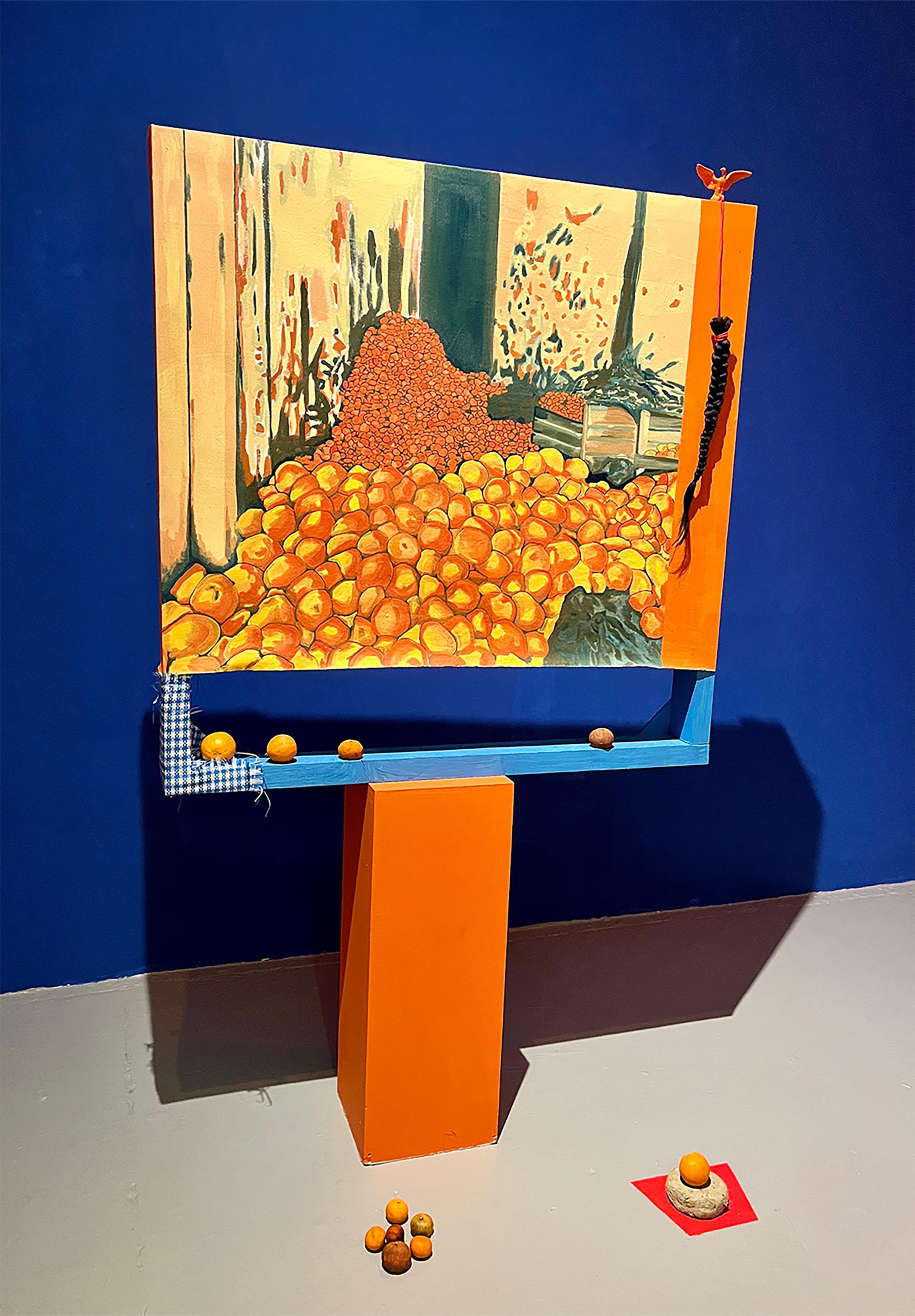 Muslin cloth, spray paint and acrylic paint