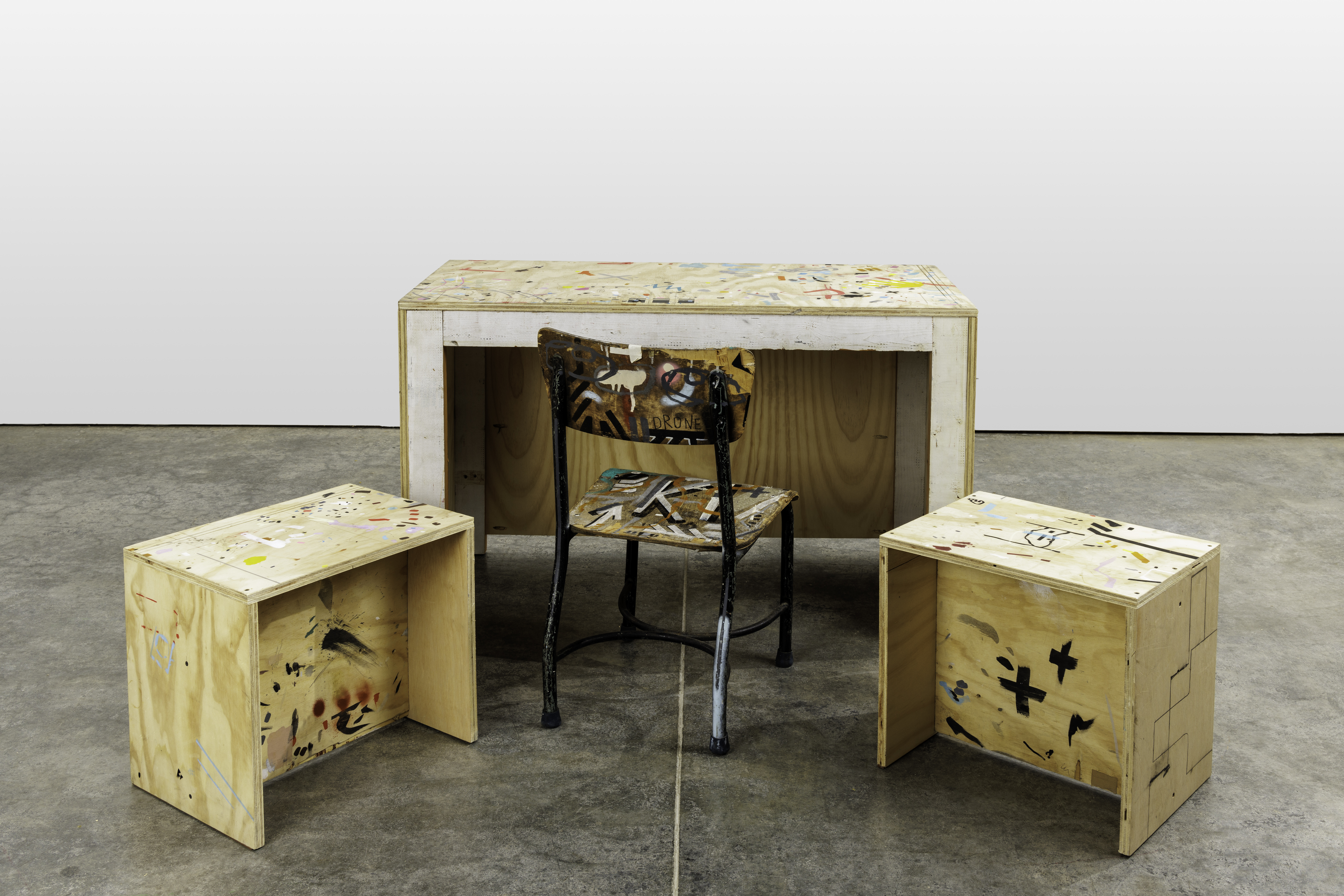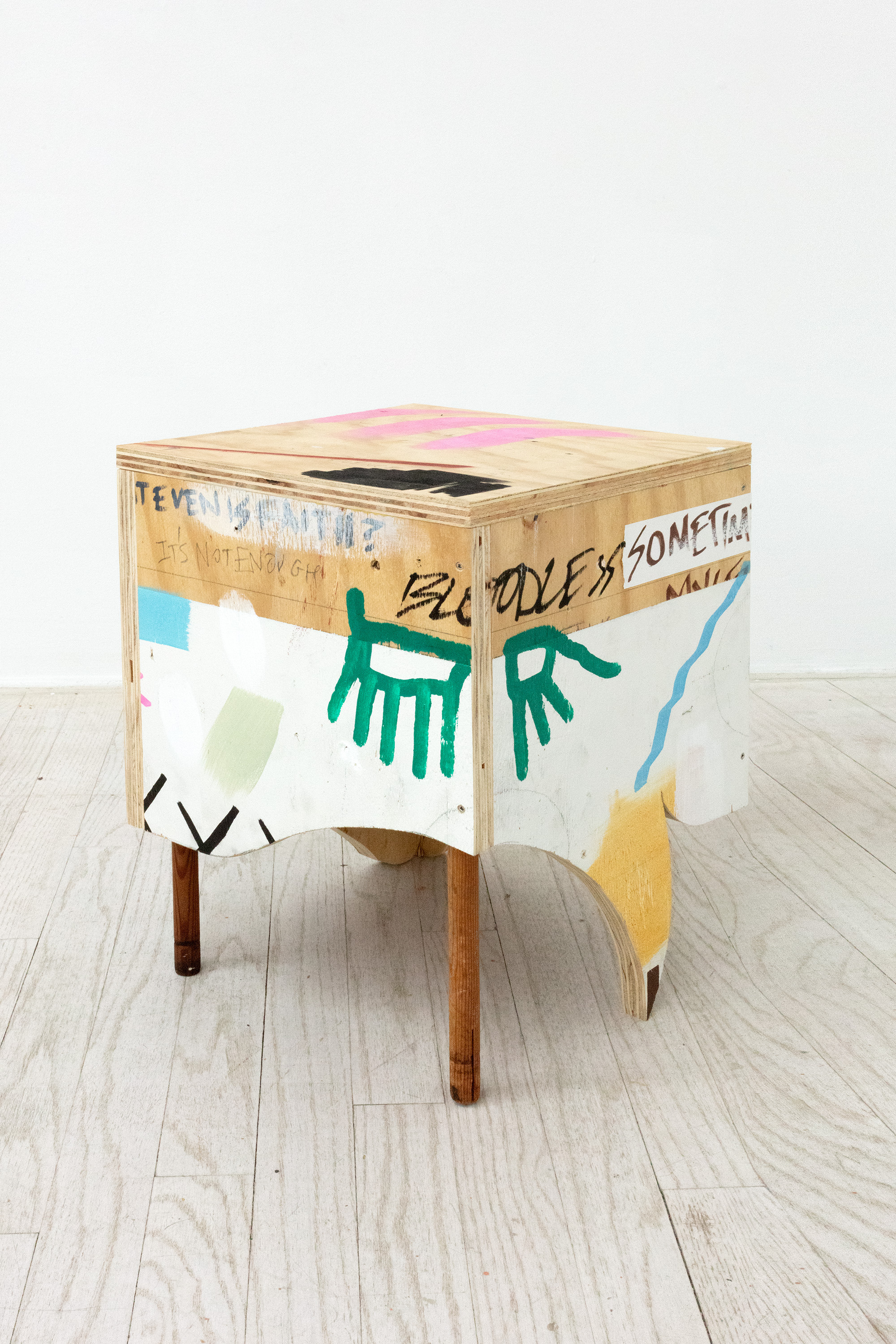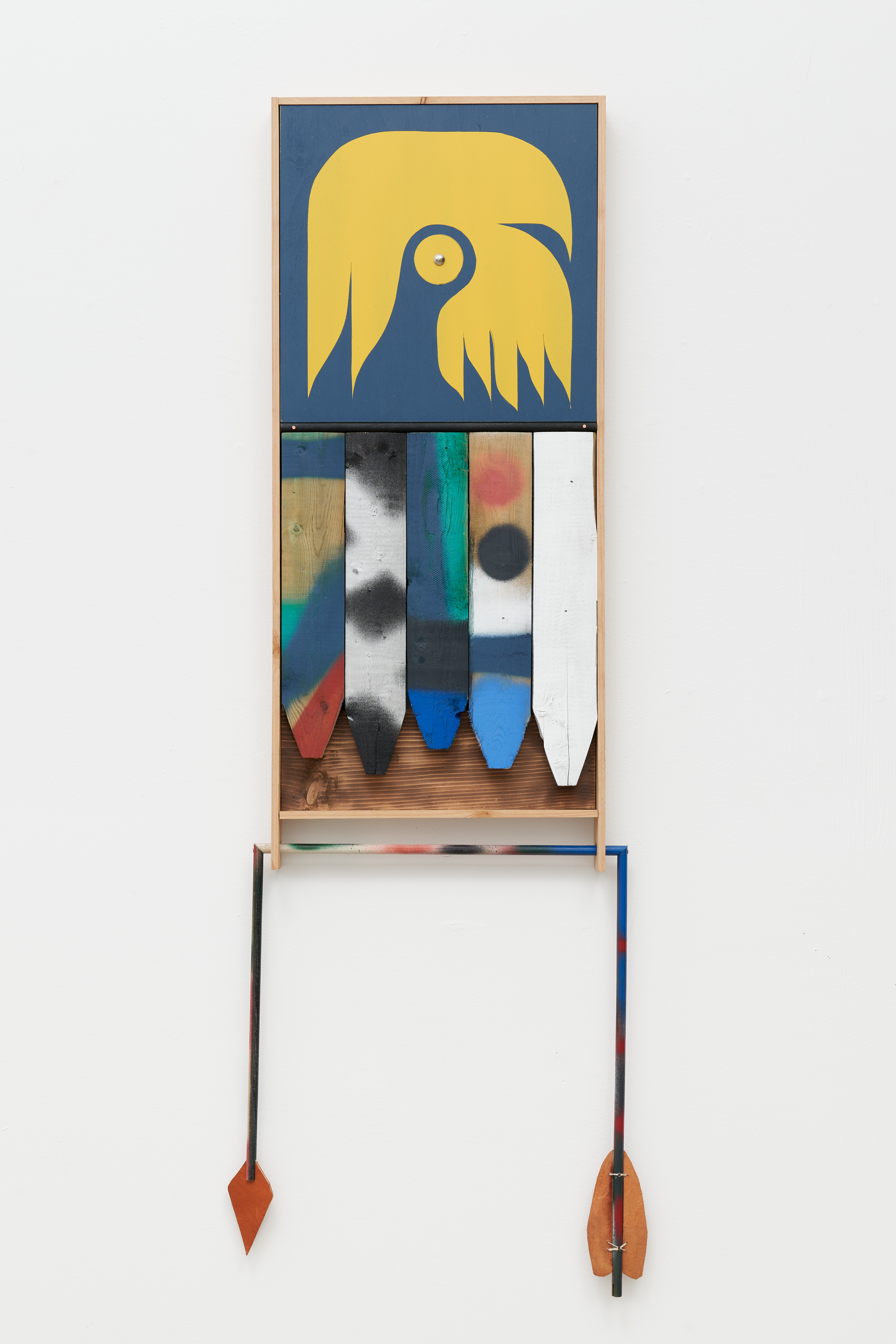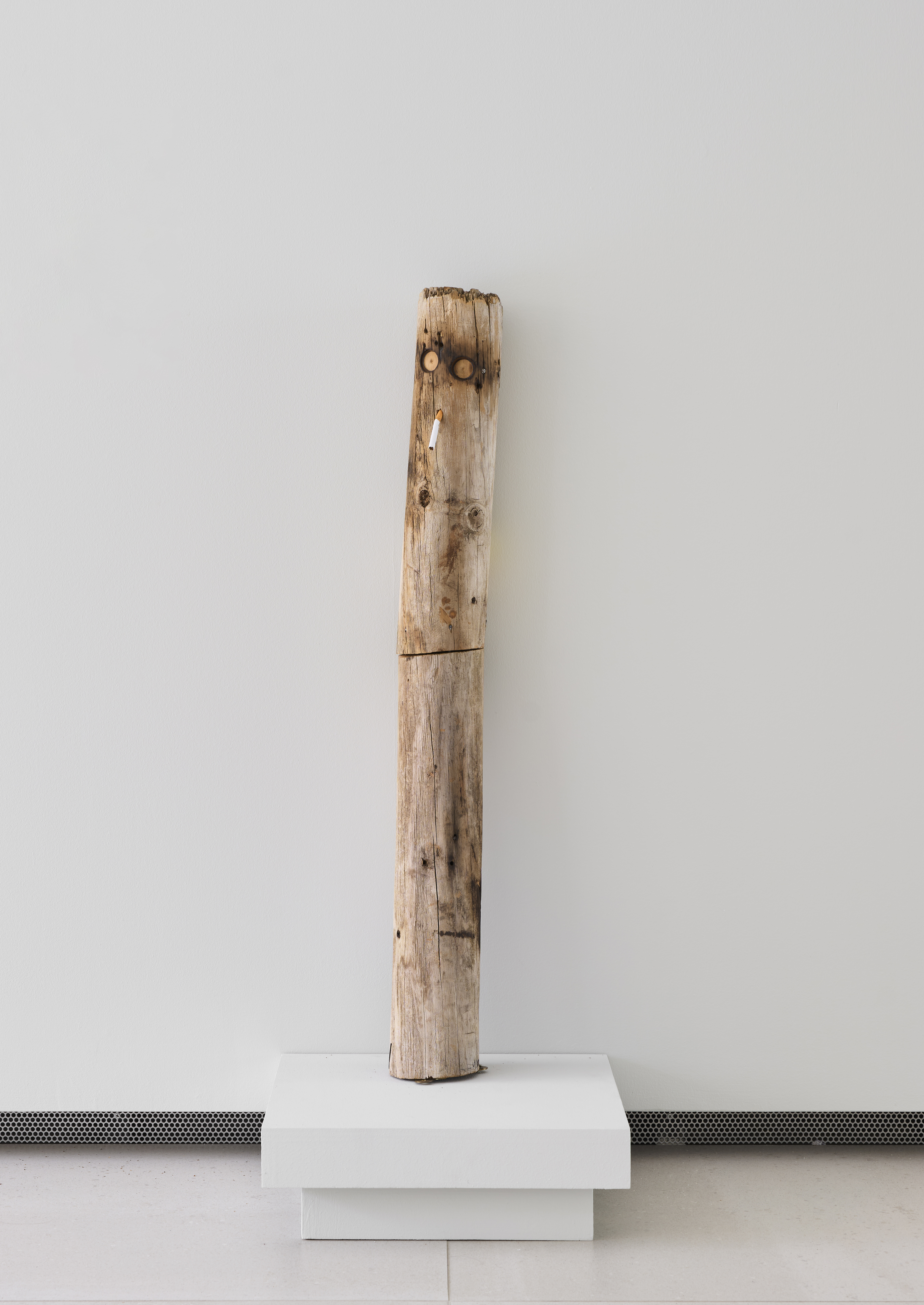 Matthew Kirk (Navajo), American Spirit, 2021. Found wood, American Spirit cigarette, metal, 42 × 5 × 5 in.