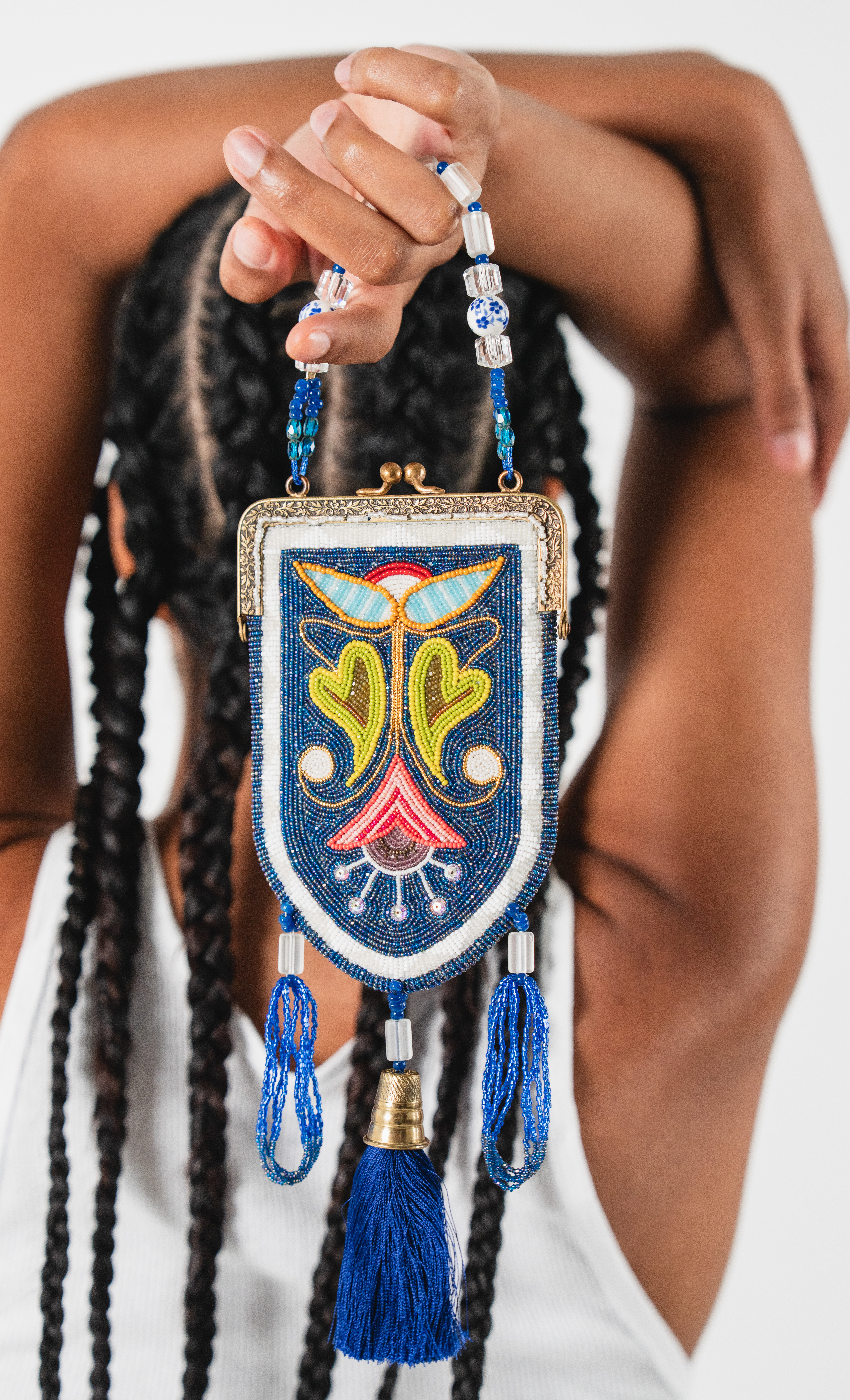 Beaded handbag with antique purse frame, 2023
