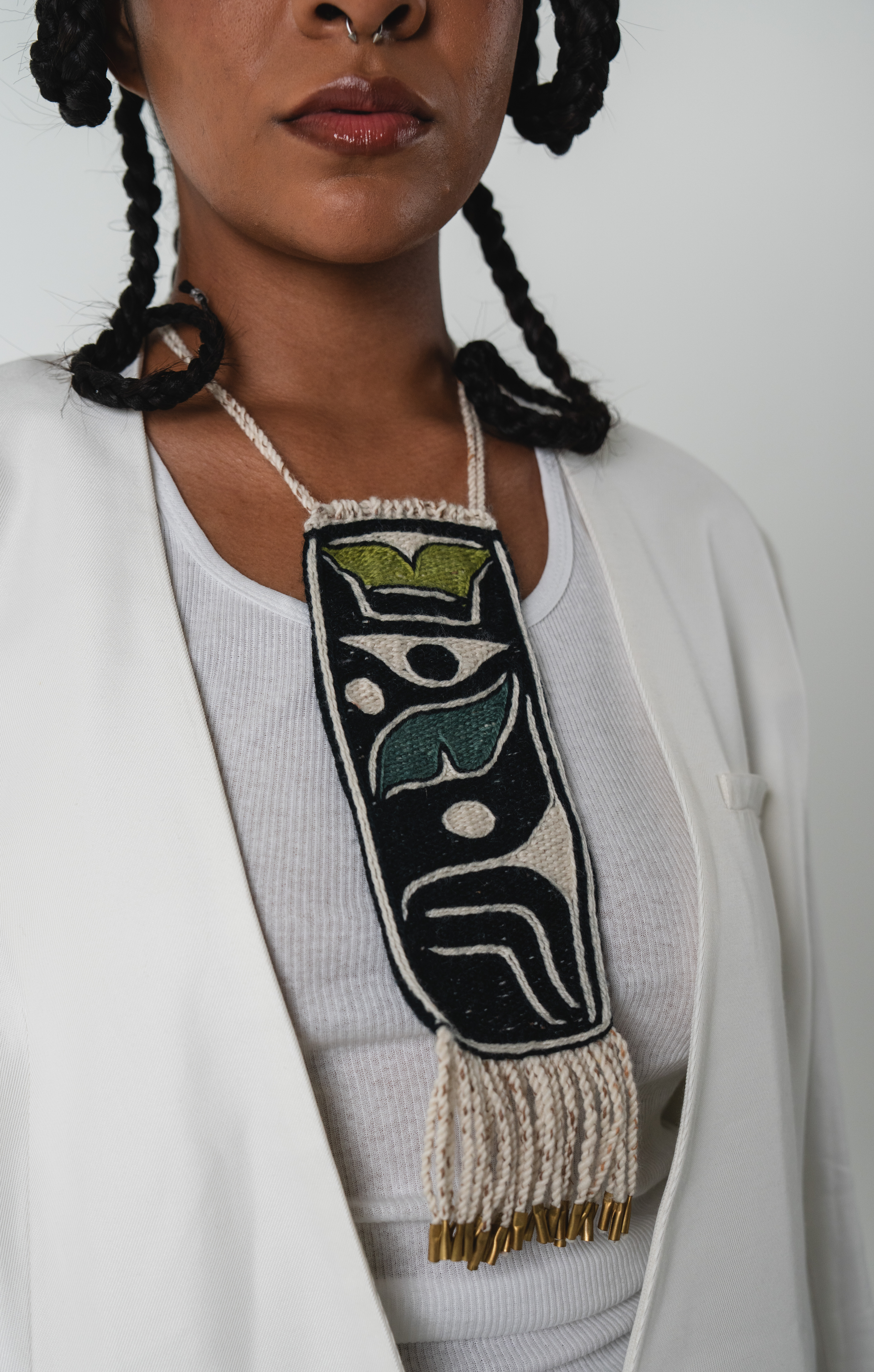 Long Chilkat Pendant, Green and Blue