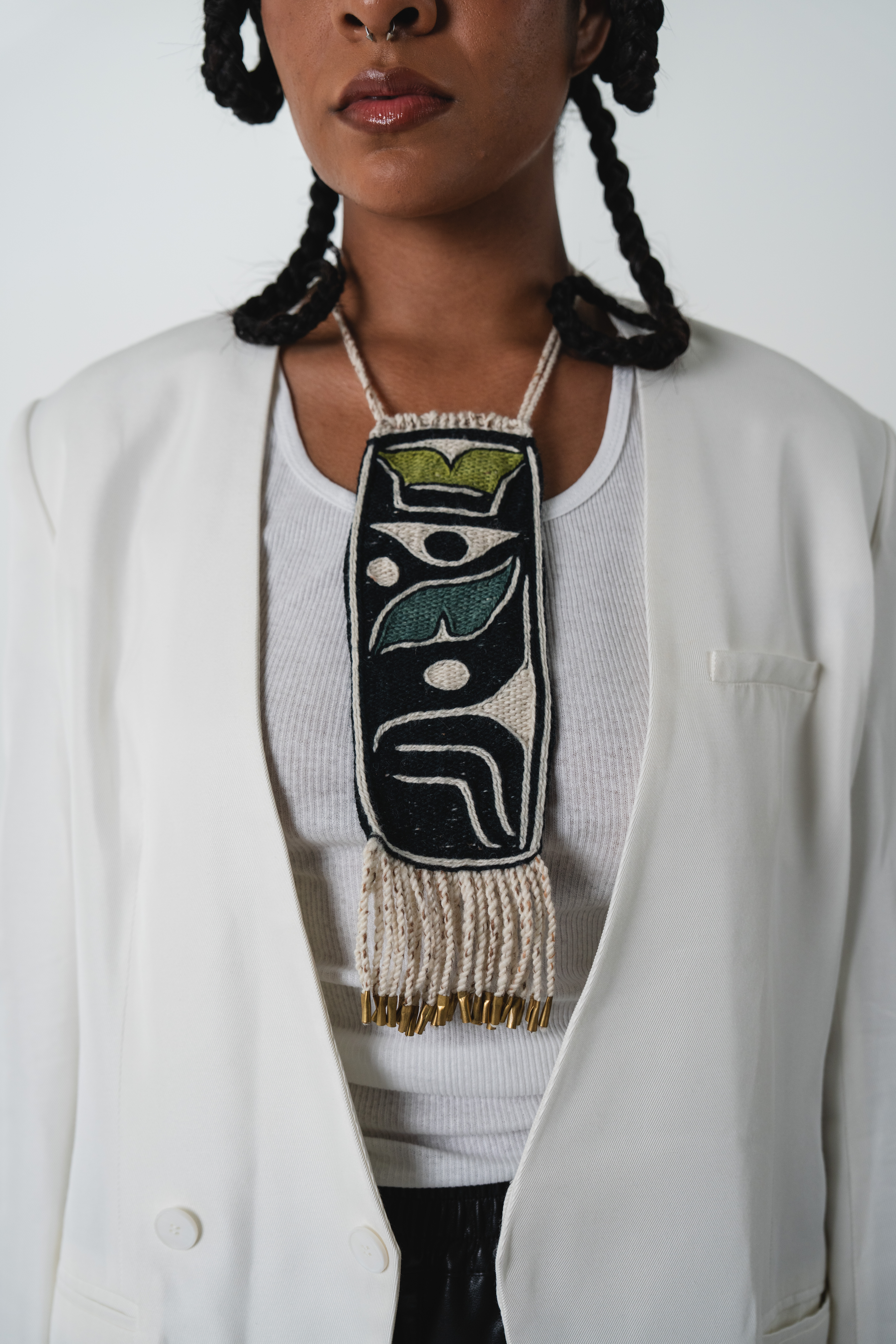 Long Chilkat Pendant, Green and Blue