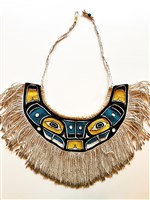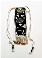 Sydney Akagi (Tlingit), Long Chilkat Pendant, Green and Blue, . Wool and metal, 23 × 3 ½ in.