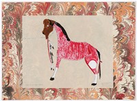 Wendy Red Star (Apsáalooke (Crow)), Spotted Arrow, Dúusbachee (Kiowa), 1881, Walter Lowrie Finley, "In the Spirit of Green Skin", 2021. Acrylic, graphite, kitakata paper, marble paper, 22 × 30 in.
