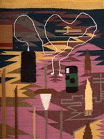 Tyrrell Tapaha (Diné), I'll be your mirror, 2024. Hand-spun vegetal-dyed Navajo Churro wool and mohair, 57 × 27 in.