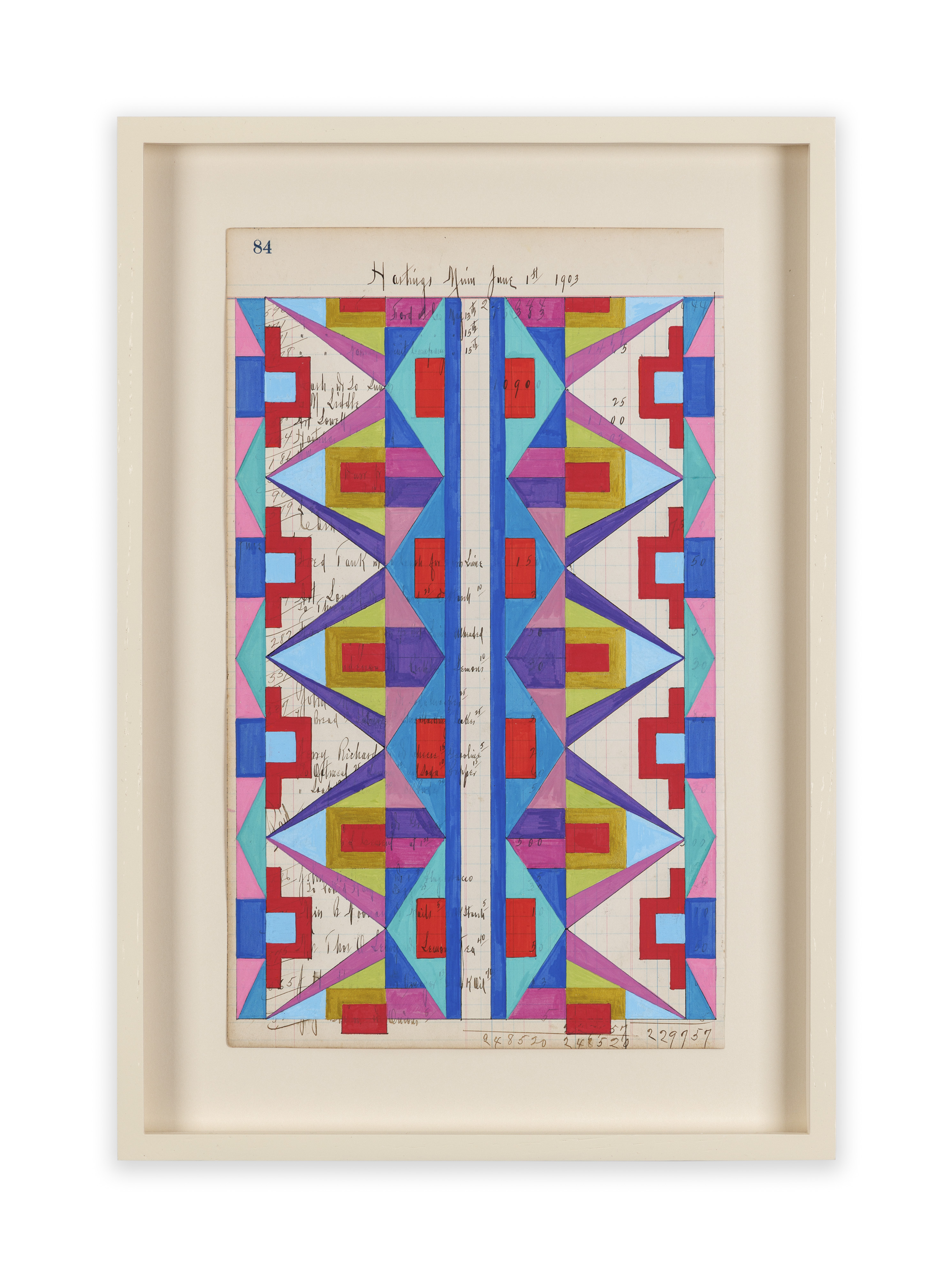 Crow geometric drawing on antique ledger paper dating 1890