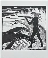 Marika Swan (Tla-o-qui-aht), Feast Bowl, 2024. Woodblock print, 30 × 22 ½ in.