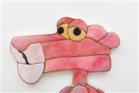 Ishi Glinsky (Tohono O'odham), Light Pink Jazz V.P., 2024. Aluminum, resin, pigment, wood, adhesive, foam, 85 ½ × 48 × 2 ¾ in.