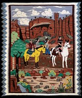 Jane Hyden (Navajo / Diné), Trading Post from the 80's, 2024. Wool and plant dye, 35 × 38 ¼ in.