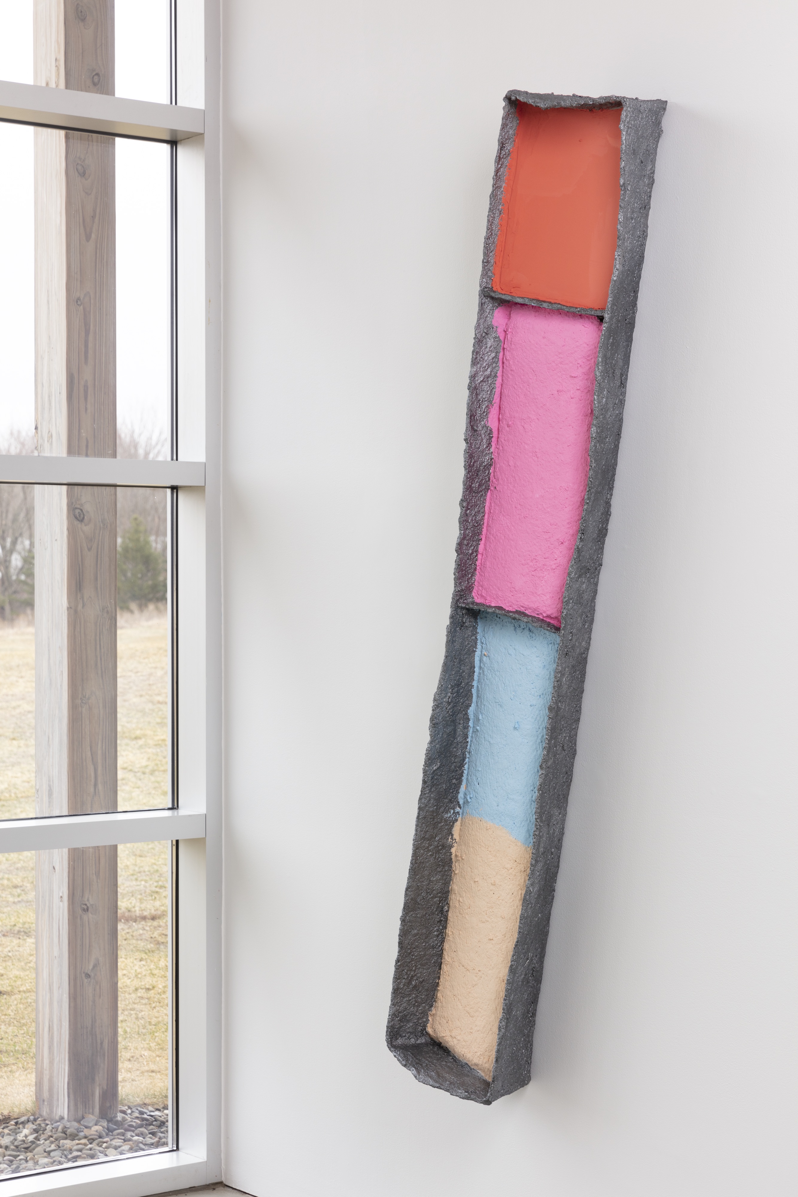 Wood, plastic, lathe, paper mâché, ink, acrylic paint, candle, paper, glass tape