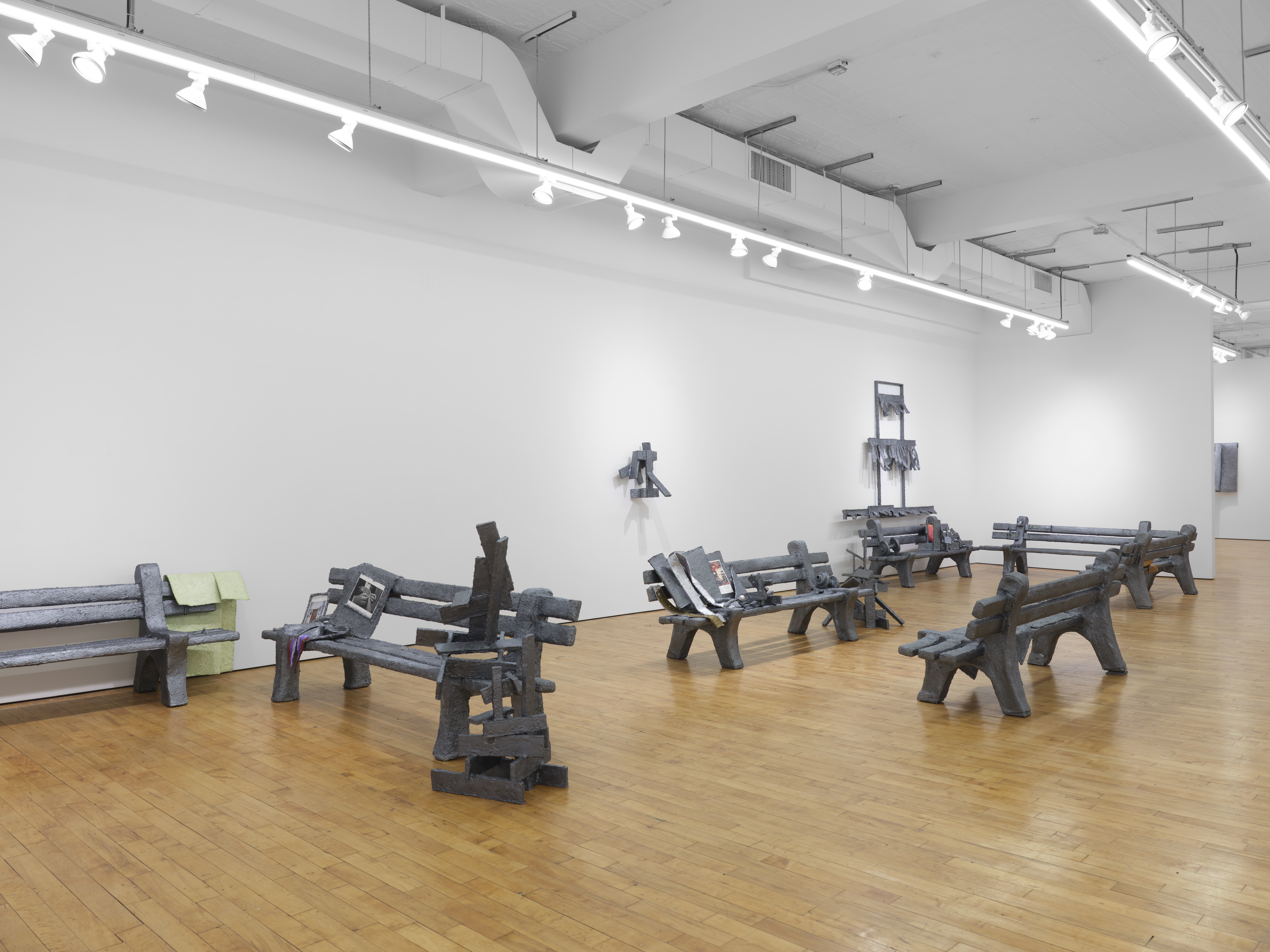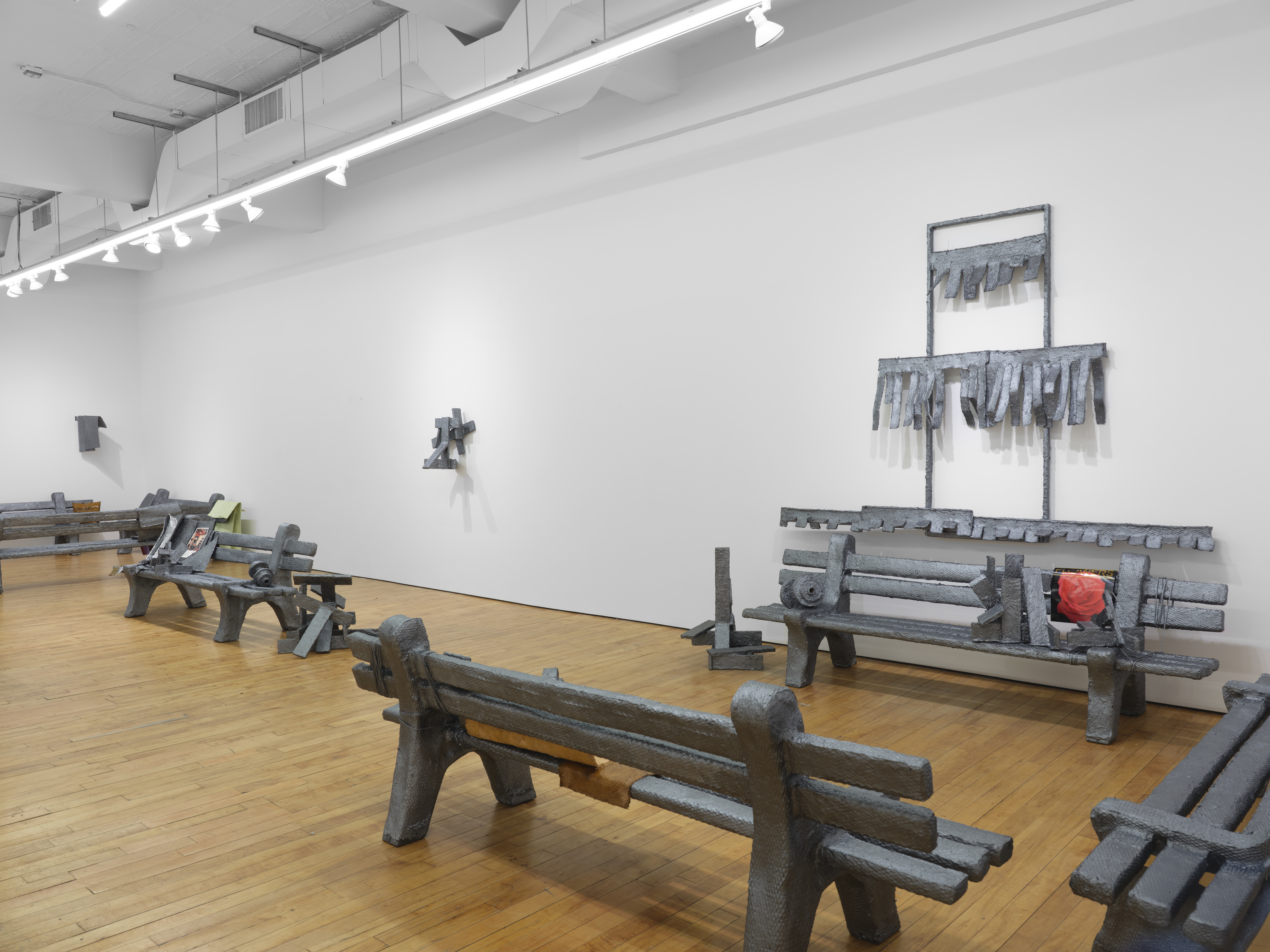 Wood, plastic, lathe, paper mâché, ink, acrylic paint, paper, wire