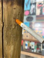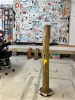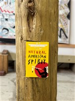 Matthew Kirk (Navajo), Another American Spirit, One for the Road, 2025. Wood, cotton strap, carved and painted wood, 51 in. dia: 10 ½ in.
