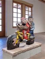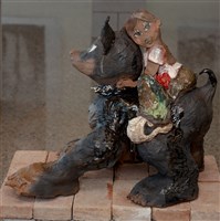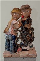 Yartiza Flores Bustos (Mexican), CORAZON (UR NOT ALONE) ~ la Dyna$ty y l@l@, 2025. Stoneware, underglaze, stain, glaze, luster, 24 × 16 ½ × 10 ½ in.