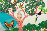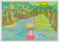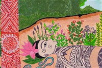 Aycoobo (Columbian), La Maloka de las Plantas, 2024. Acrylic on paper, 27 ½ × 39 3/8 in.